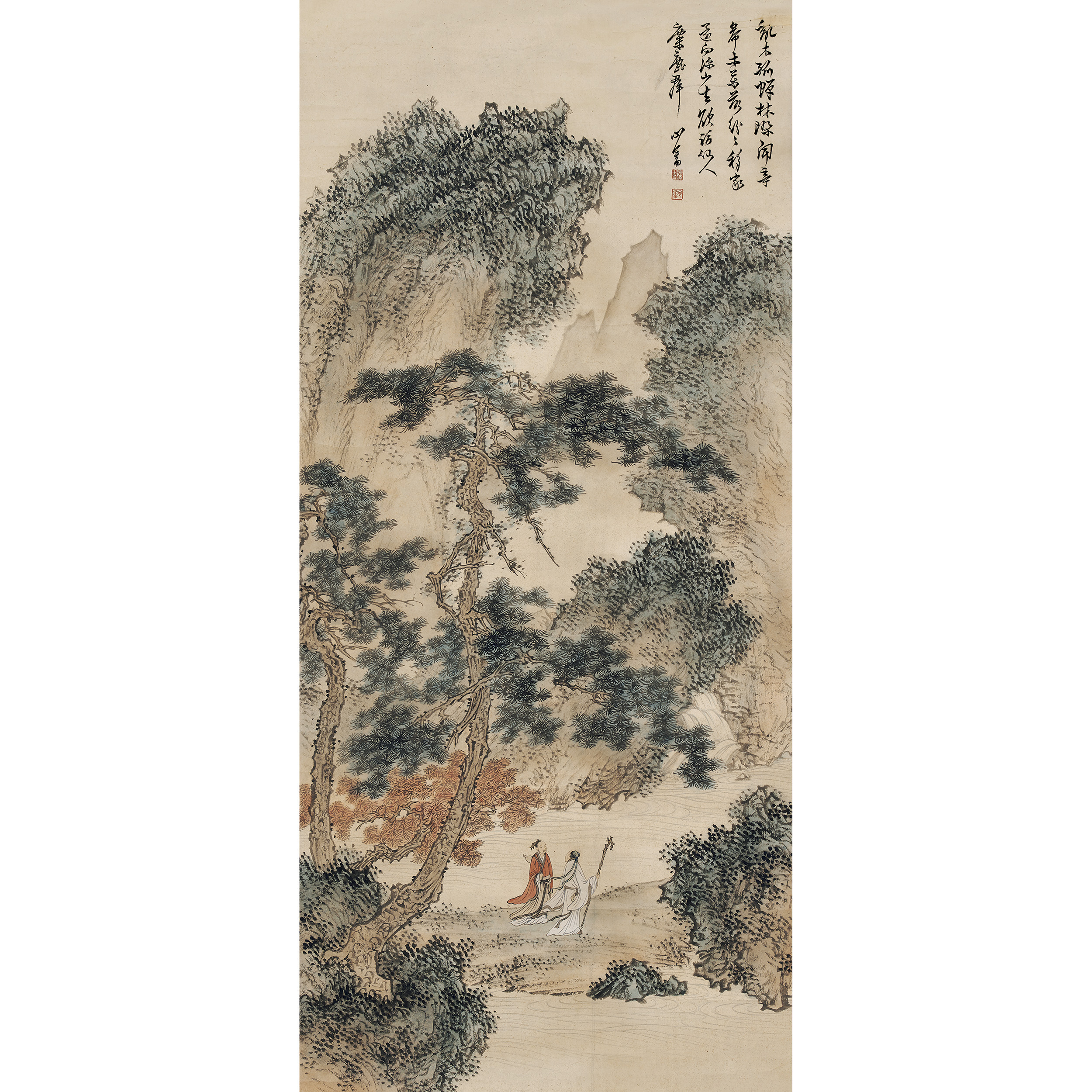 愛新覺羅•溥儒 初字仲衡,改字心畬,自號羲皇上人﹑西山逸士。北京人,滿族,為清恭親王奕訢之孫。曾留學德國,篤嗜詩文、書畫,皆有成就。畫工山水、兼擅人物、花卉及書法,與張大千有「南張北溥」之譽,又與吳湖帆並稱「南吳北溥」。