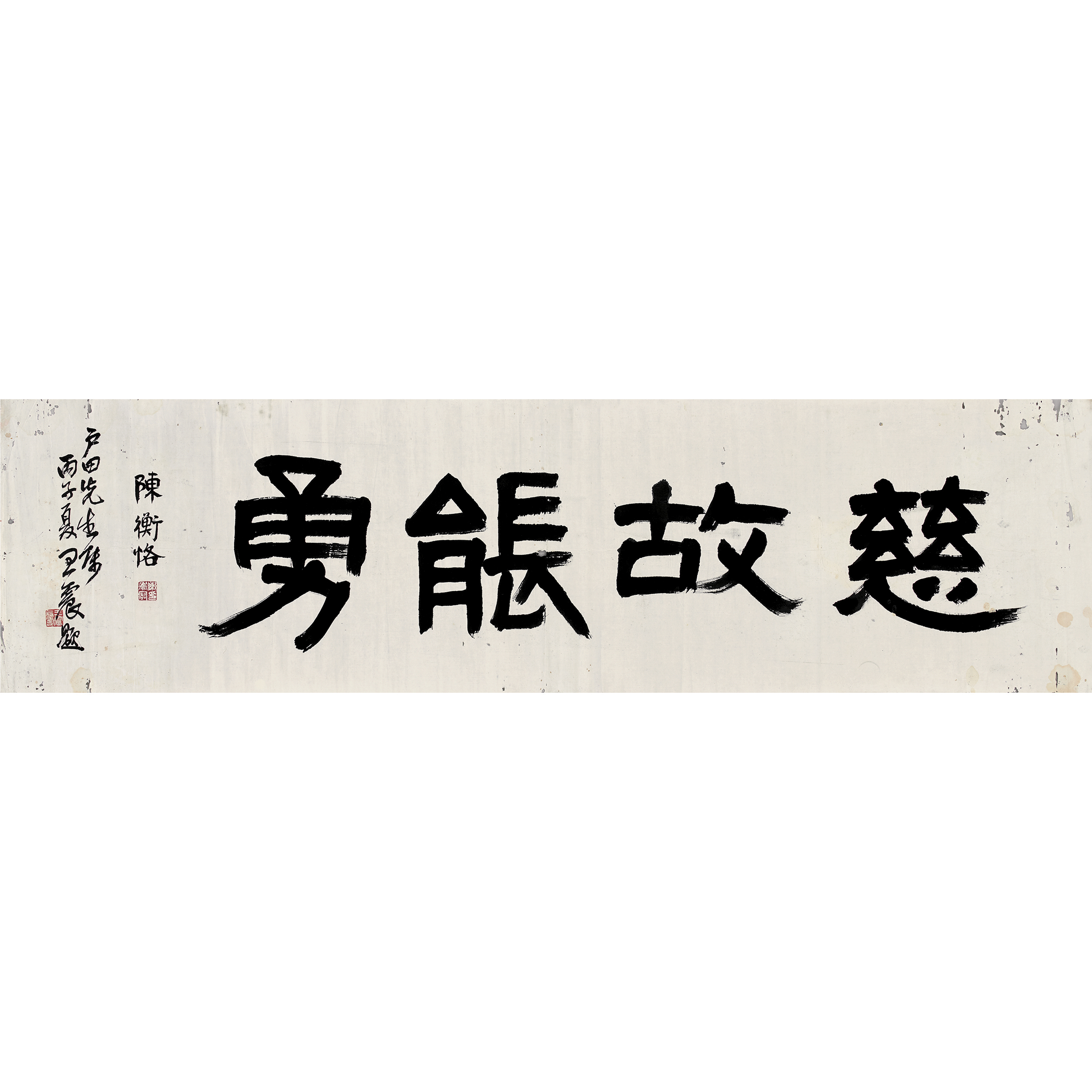 釋文:慈故能勇。說明:題跋者王一亭(1867-1938),名震,字一亭,號白龍山人、梅花館主、海雲山主等,法名覺器,祖籍浙江吳興,出生於上海青浦。清末民國時期海上著名書畫家、實業家、傑出慈善家、社會活動家與宗教界名士。工書畫,尤擅佛像,畫風與吳昌碩相近。為海上重要名家之一。作者簡介:陳衡恪 字師曾,號槐堂,又號朽道人。祖籍今江西修水縣義寧鎮桃裡竹圾村人,陳三立長子。近代著名畫家、全才藝術家。繪畫、篆刻、詩文、書法兼長。曾得吳昌碩親授,為人正直謙虛,不追逐名利,得金石書畫界的好評。