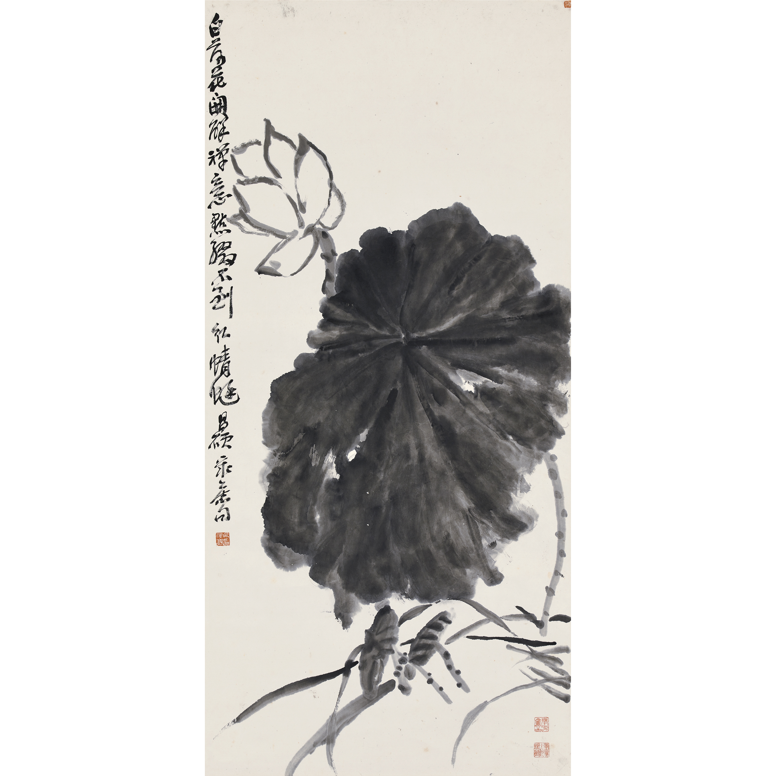 款識:白荷花開解禪意,點綴不到紅蜻蜓。昌碩錄舊句。