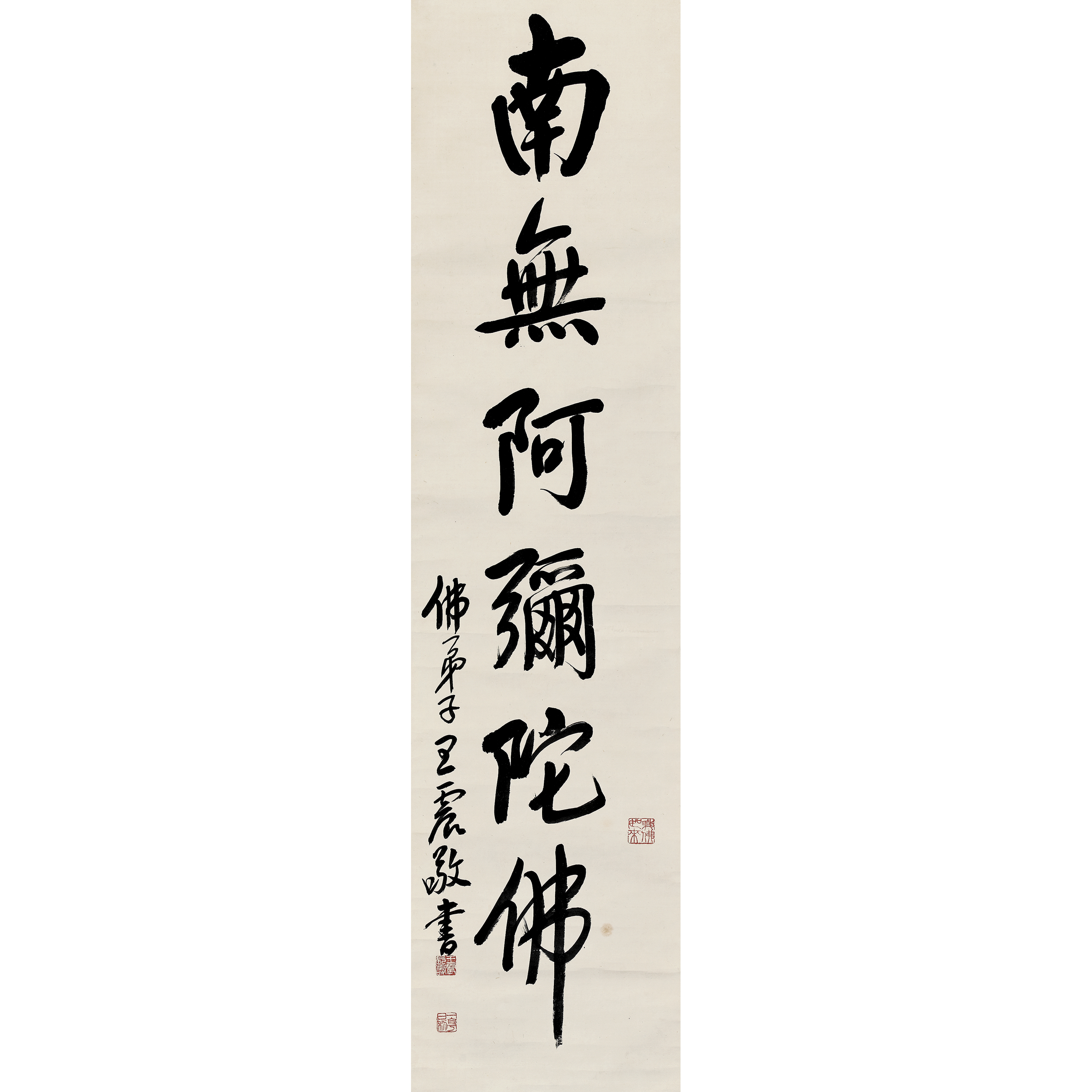 鈐印:王震長壽(白)、一亭日利(朱)、我佛如來(朱)