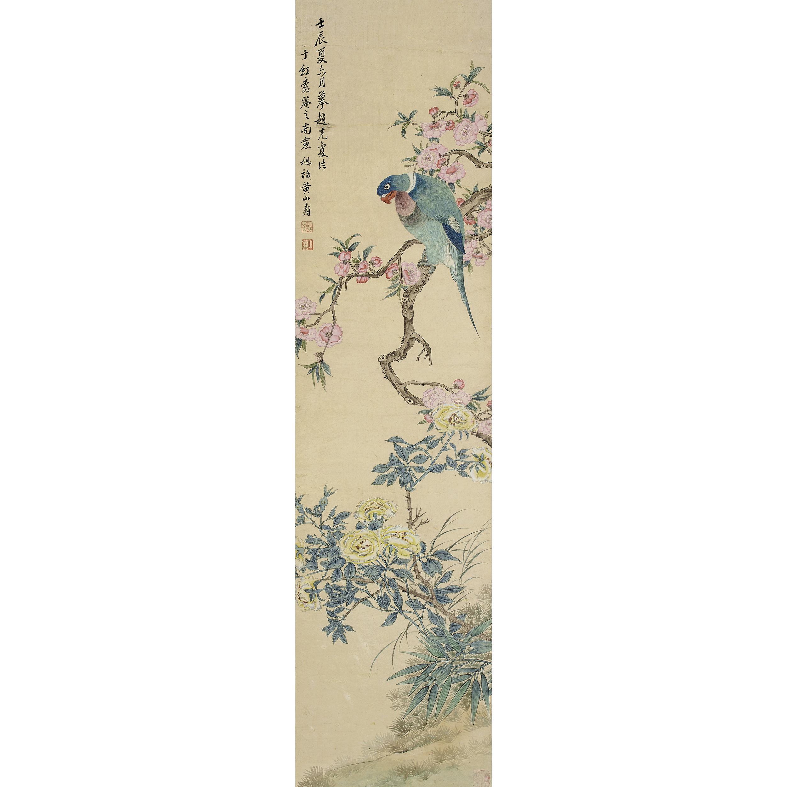 黃山壽 原名曜,字旭初,別字旭道人,晚號旭遲老人,又號麗生,江蘇武進人,官直隸同知。幼年貧困,一志於書畫,書工唐隸北魏及鄭燮、惲壽平,得其神韻。畫則人物、仕女、青綠山水,雙鉤花鳥及墨龍、走獸、草蟲、墨梅、竹石,無一不能。