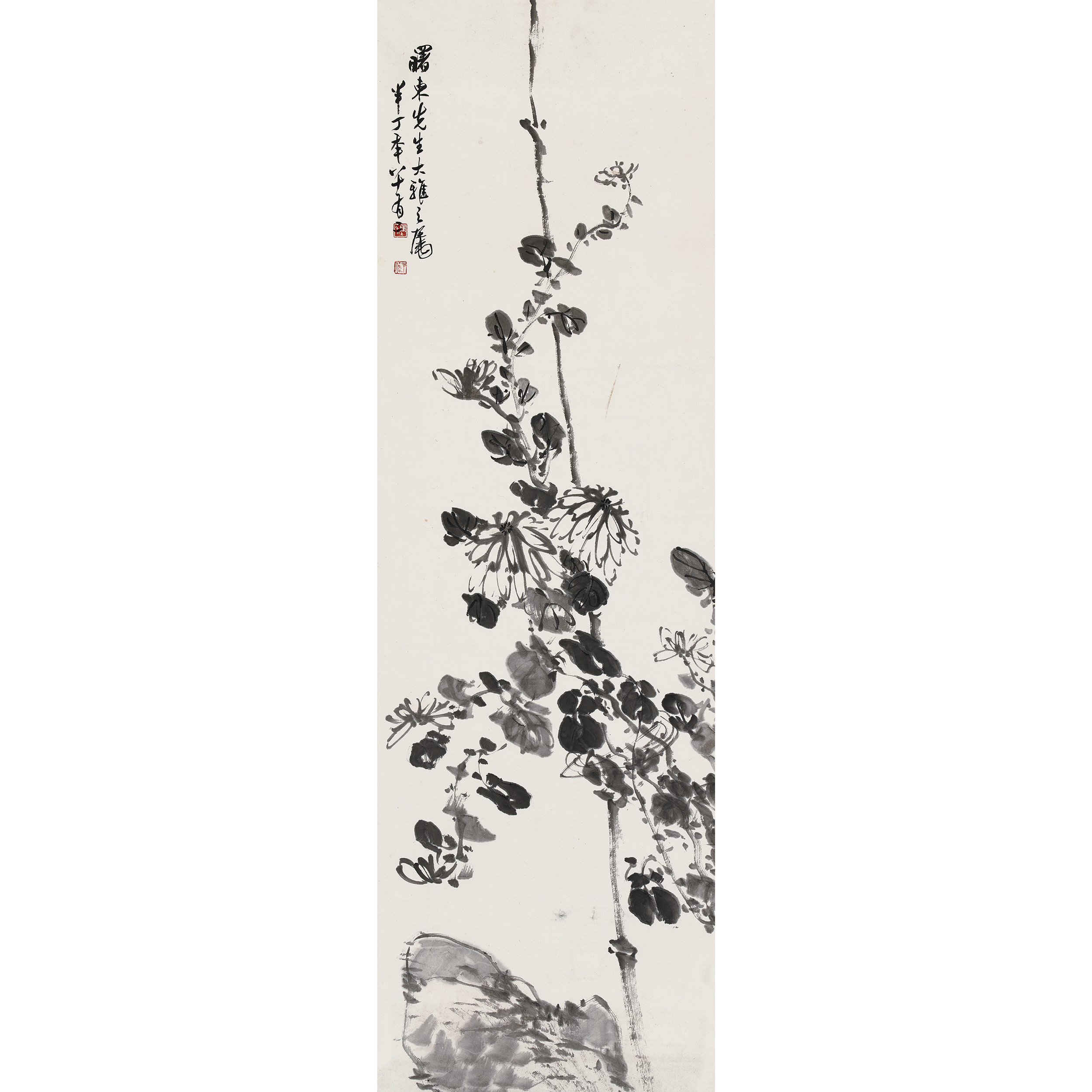 陳半丁 即陳年,字半丁,別署辟癡,又字靜山。以字半丁行世,號半丁老人、半叟、山陰半叟、稽山半老、山陰道上人、不須翁等。陳半丁擅長花卉、山水,兼及書法、篆刻。寫意花卉師承任伯年、吳昌碩,又師法陳淳、徐渭、石濤、李複堂、趙之謙諸家。書法以行草見長。