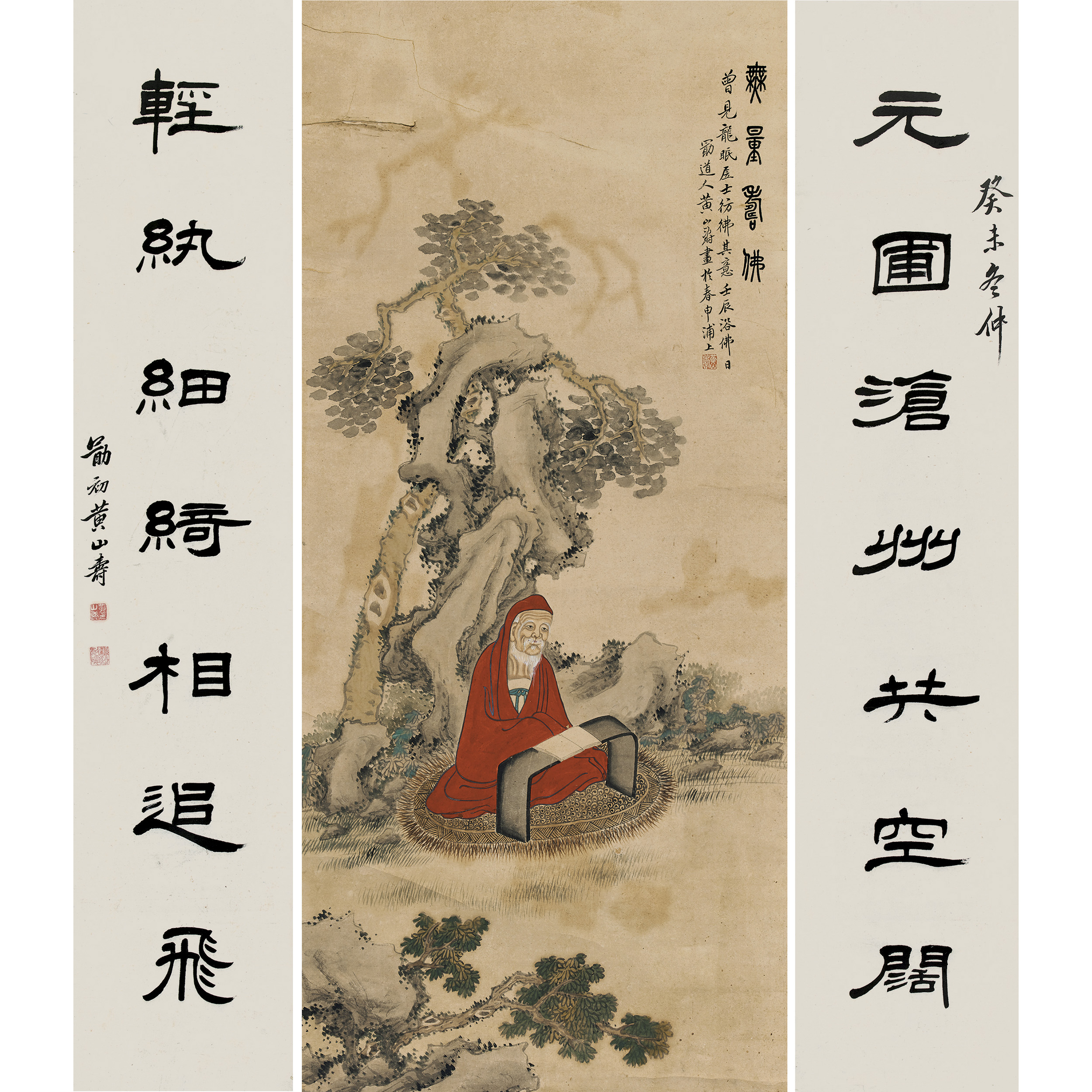 <畫>壬辰(1892)浴佛日,勖道人黃山壽畫於春申浦上。鈐印:黃山壽(白)