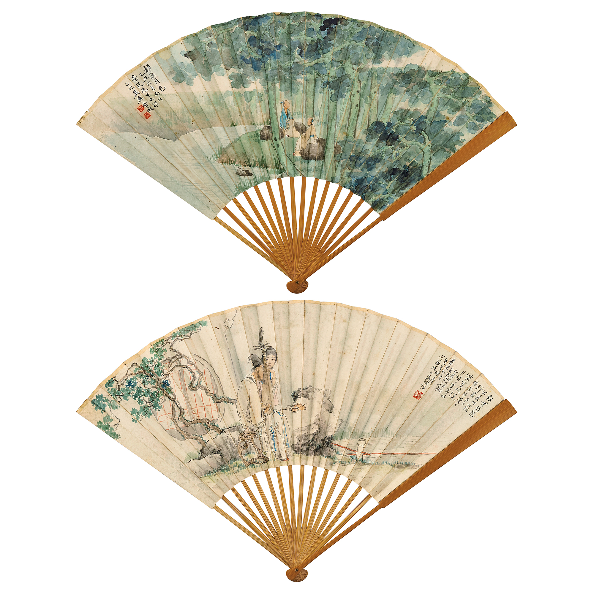 來 源:日本書畫家高橋廣峰同一舊藏。作者簡介:金城 字鞏北,亦字拱北,又名紹城,號北樓、藕湖,祖籍浙江省吳興縣。金城家學淵源,對古器物字畫收藏甚富,對傳統繪畫尤其喜愛,初學戴熙的精細筆法,後接近陸廉夫畫風。山水、花鳥、人物皆具古意。沈心海 江蘇崇明人(今上海市崇明人)。原名涵,又名兆涵,錢慧安入室弟子,擅畫、花卉、山水、人物,皆佳妙,尤精仕女。卒年九十余。沈心海為錢慧安嫡派弟子,花卉、山水、人物兼擅,更精仕女,所作遒秀古艷,而渲染發髻和開相能一洗甜俗妖媚之習,有出藍之處。