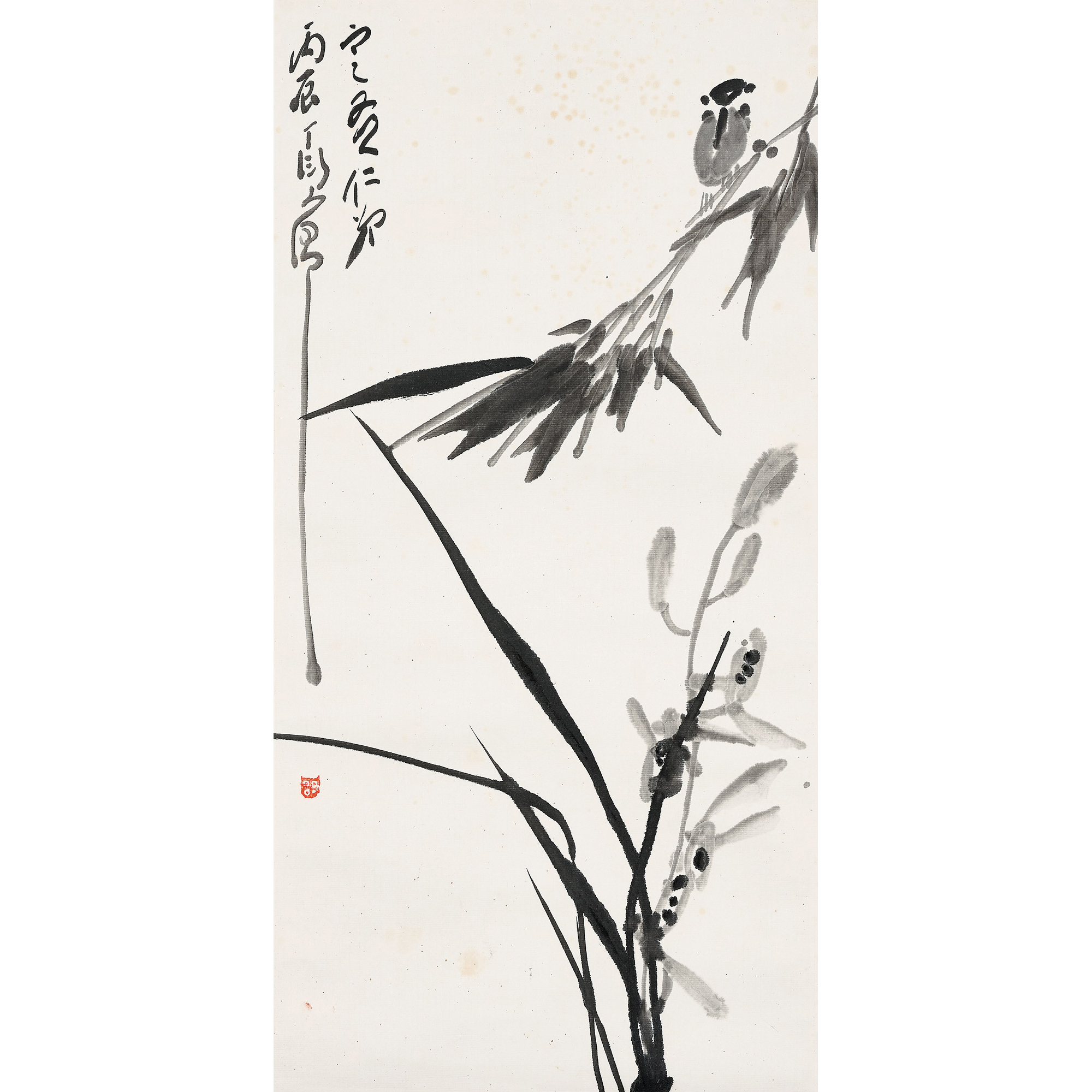 注:同一上款人“定賢仁弟”為丁衍庸弟子王定賢。作者簡介:丁衍庸 後改名丁鴻,字叔旦,號肖虎、丁虎,廣東省茂名縣(今高州市)謝雞鎮茂坡村人。擅長花鳥、山水、人物,花鳥畫擷取朱耷、徐渭、金農的特點,自成一格;山水畫筆觸膽大豪放,佈局革新,留白巧妙,意境深遠;人物畫也饒有情趣。中國現代美術的重要宣導者之一,現代著名國畫家、油畫家、篆刻家、美術教育家。