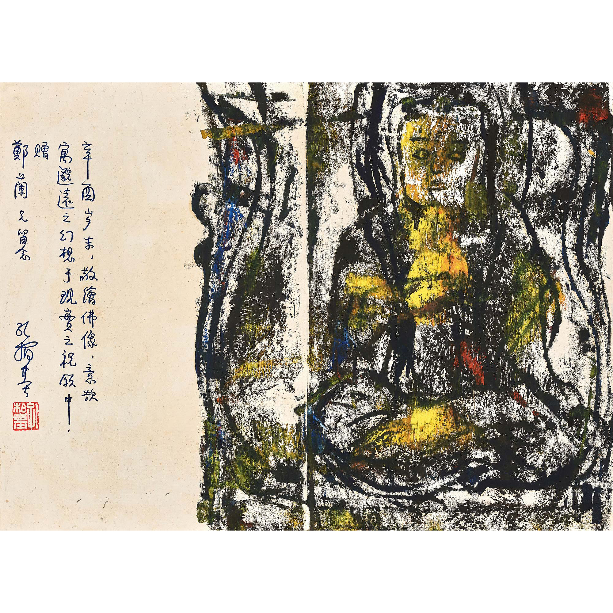 款 識:辛酉歲末,敬繪佛像,意欲寓邈遠之幻想於現實之祝願中,贈鄭蘭兄留念。孔柏基。