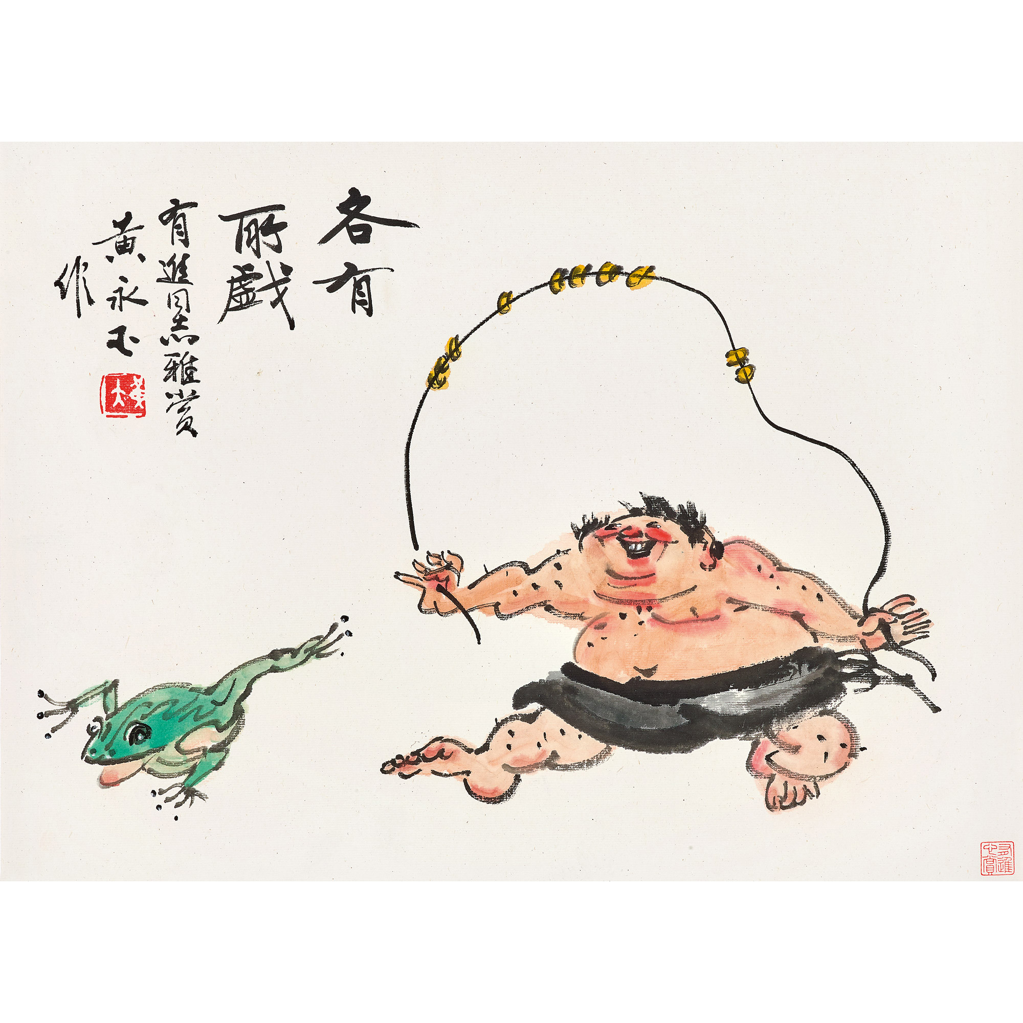 款 識:各有所戲。有進同志雅賞,黃永玉作。