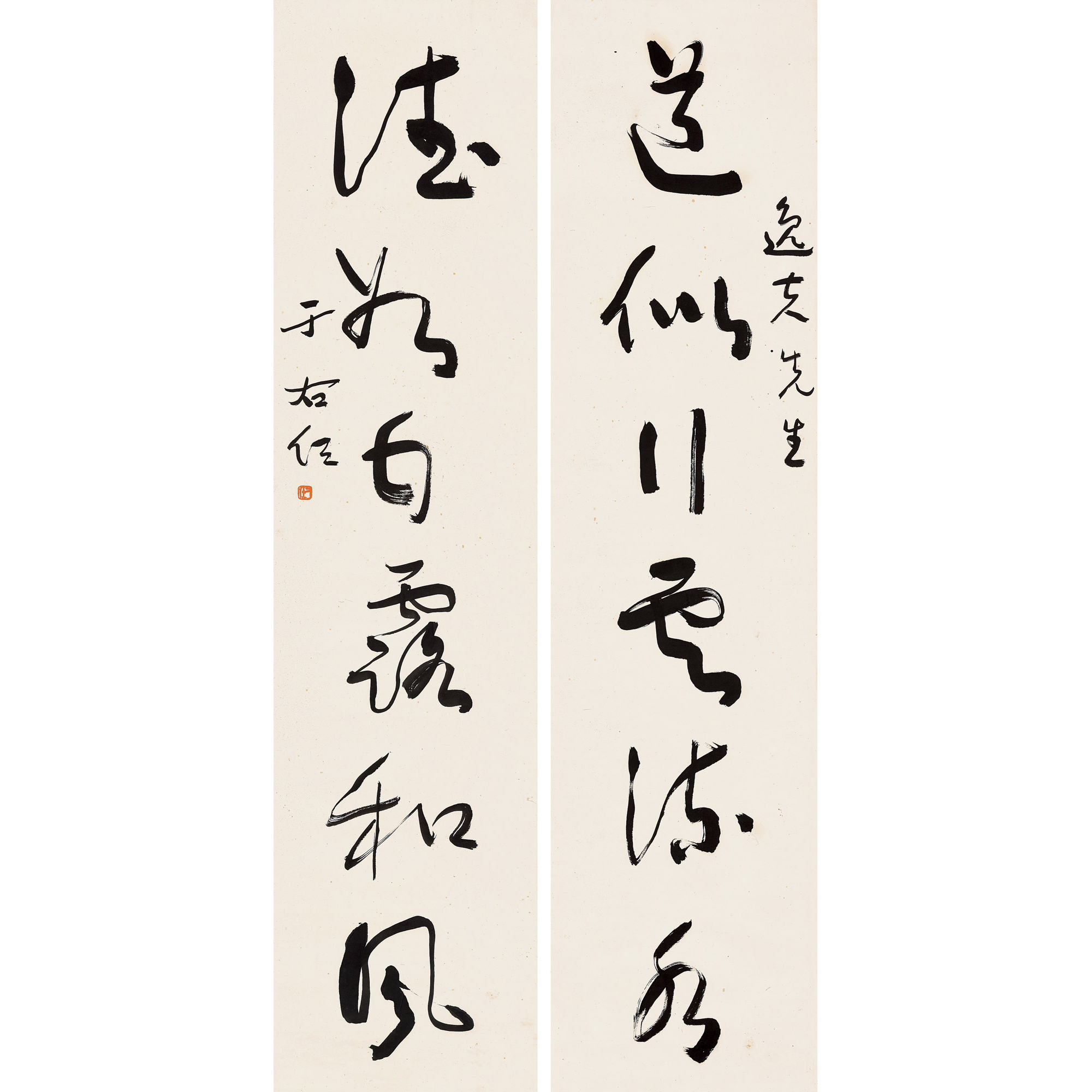 釋 文:道似行雲流水,德如甘露和風。作者簡介:于右任 原名伯循,字誘人,爾後以“誘人”諧音“右任”為名;別署“騷心”“髯翁”,晚年自號“太平老人”。中國近代書法家,復旦大學、上海大學、國立西北農林專科學校(今西北農林科技大學)等中國近現代著名高校的創辦人。其書法由碑學入手,尤擅草書,所創“標準草書”,以風靡一時,為人所重。