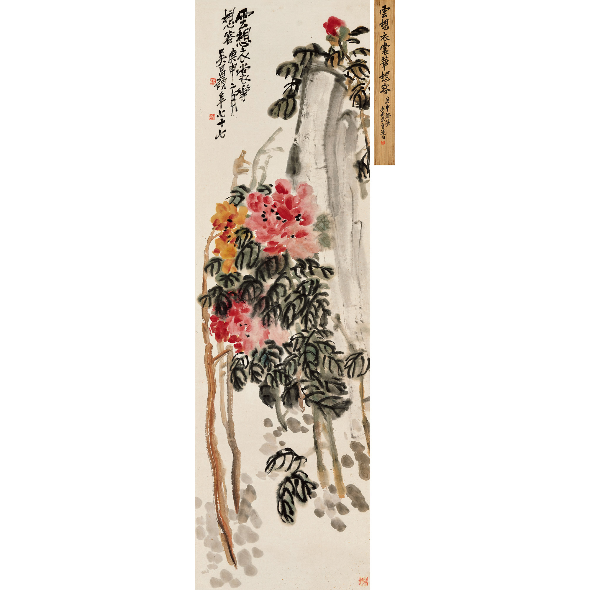 款  識:雲想衣裳花想容。庚申二月,吳昌碩年七十七。