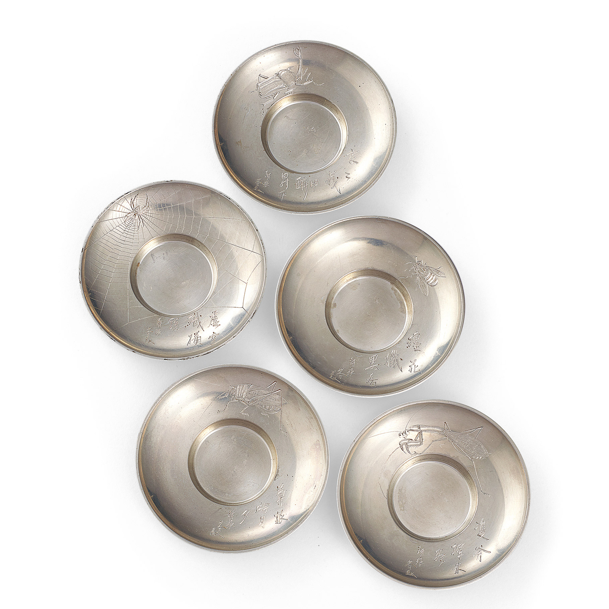 銕琅刻 錫蟲雕茶托