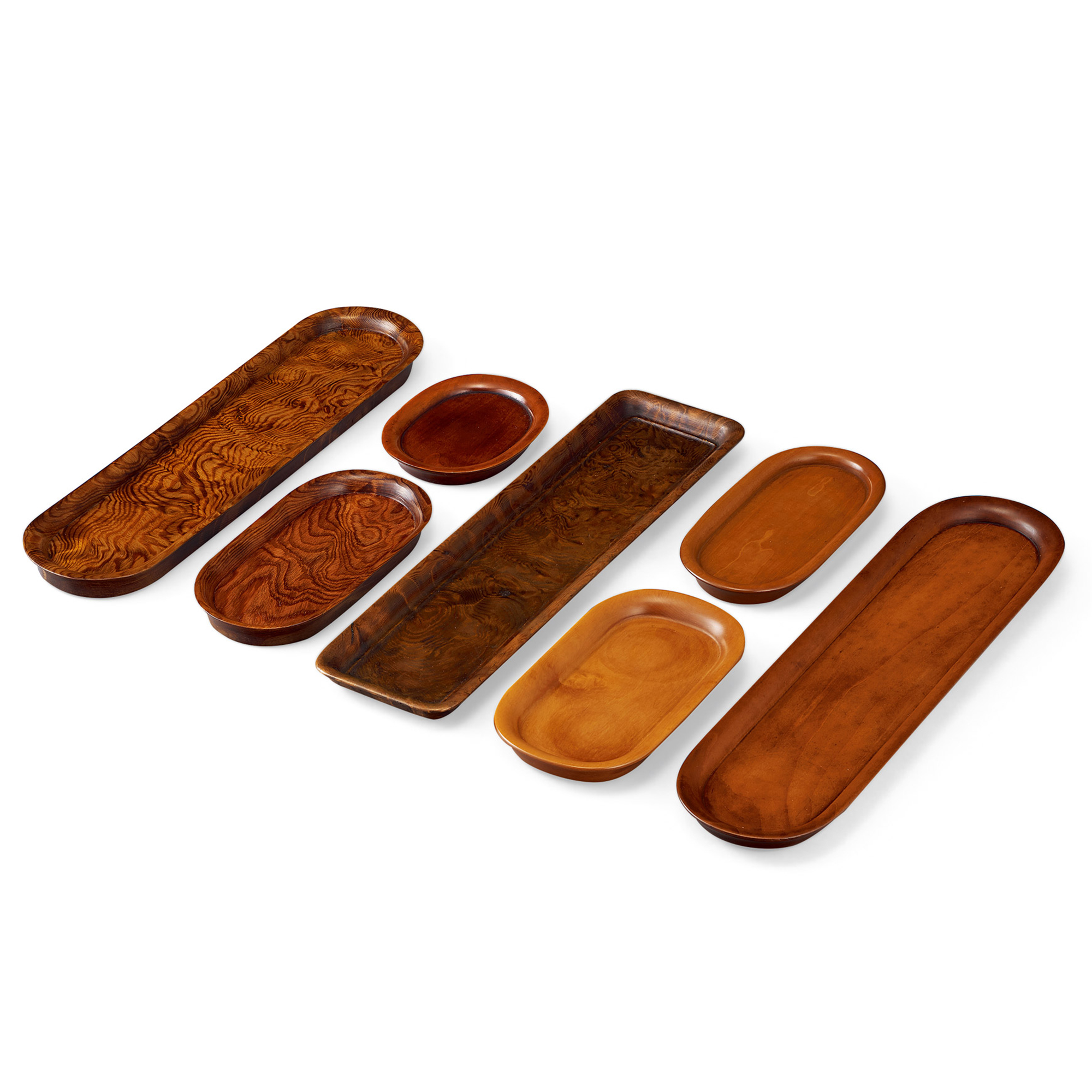竹仙刻 彫抜老松杢盆3點(付共箱) 黃楊木盆4點