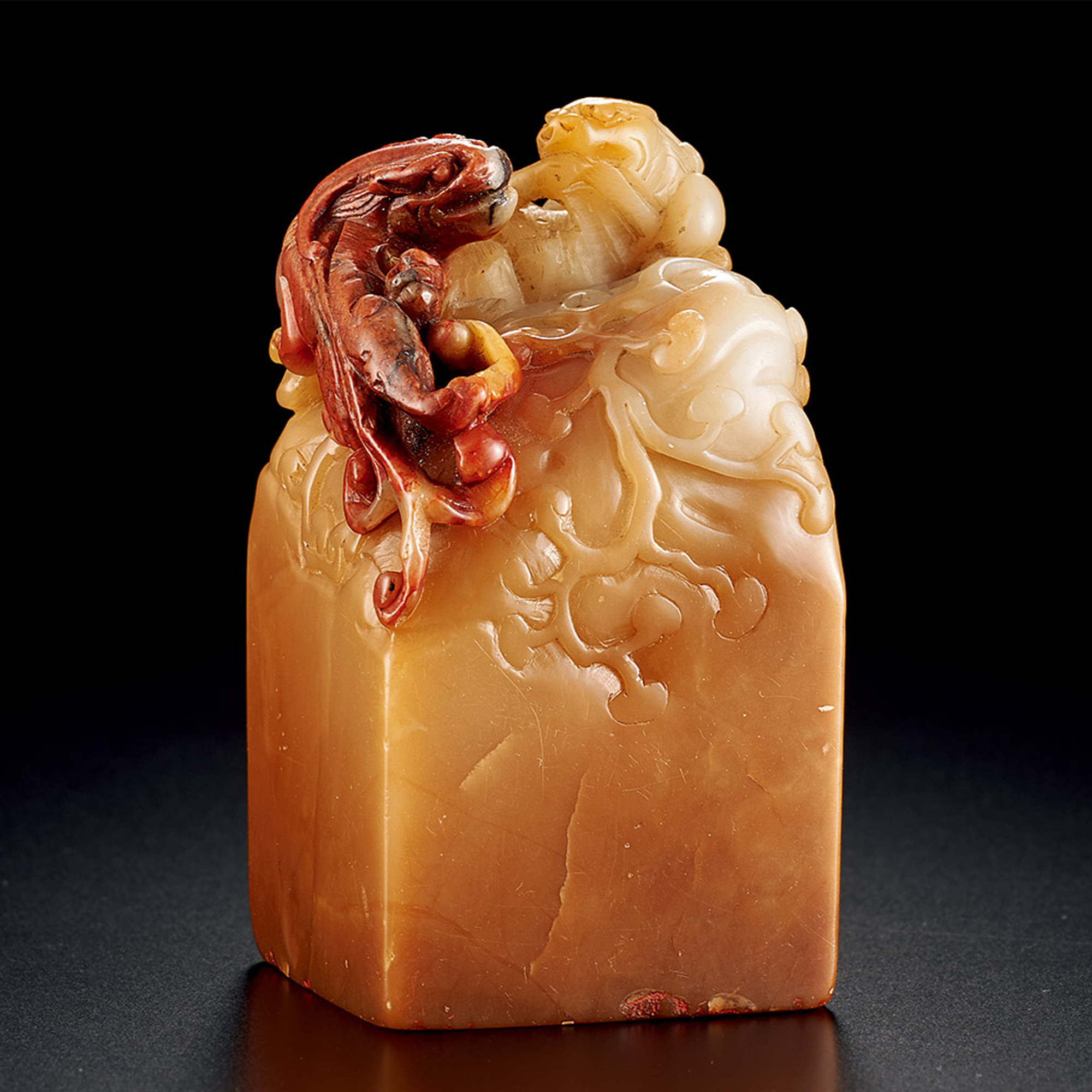 壽山石巧色芙蓉雙螭閒印