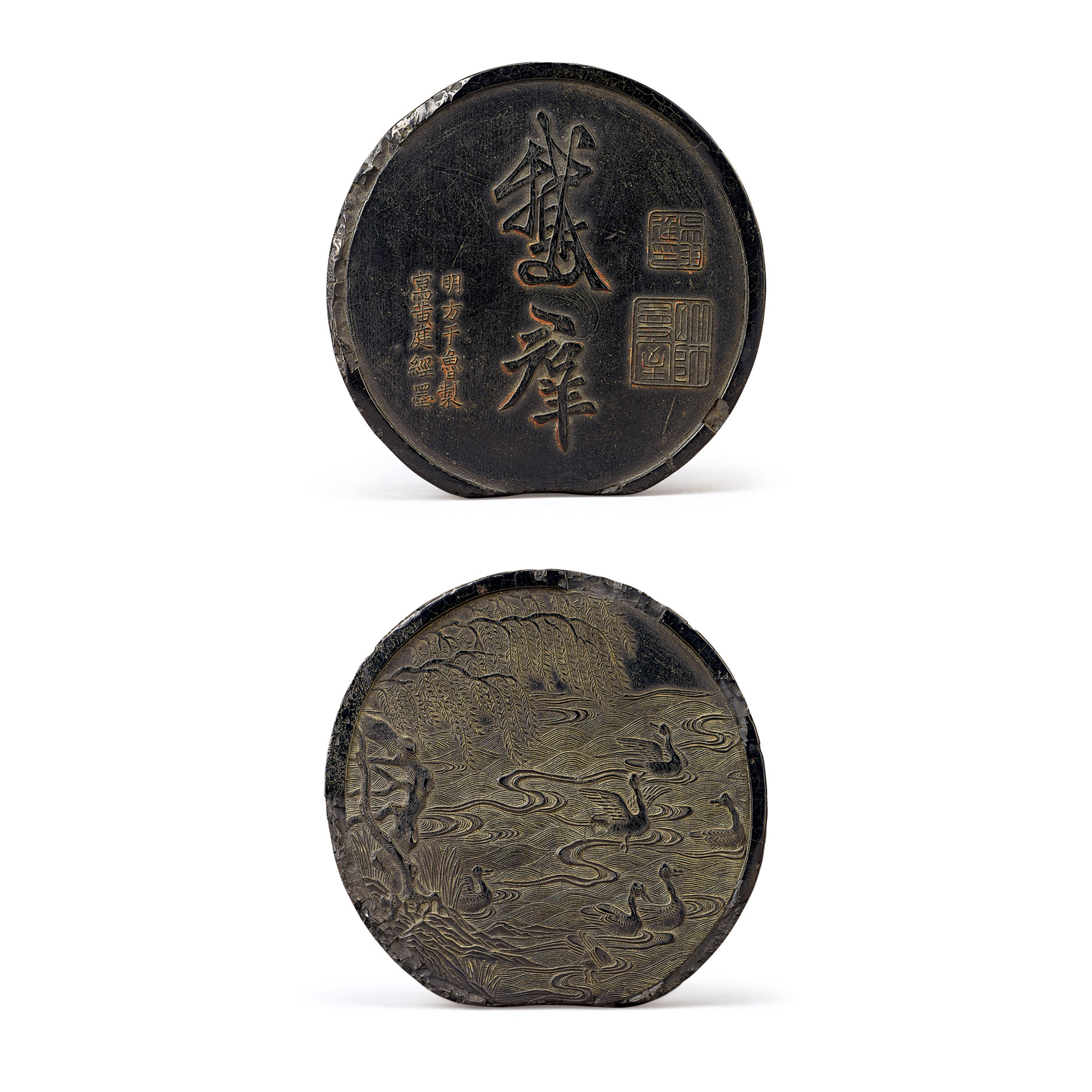 参阅:《文房精粹·方氏墨谱 卷六》日本同朋社,昭和庚申年,方氏墨谱鸿寶 七 鵝群墨