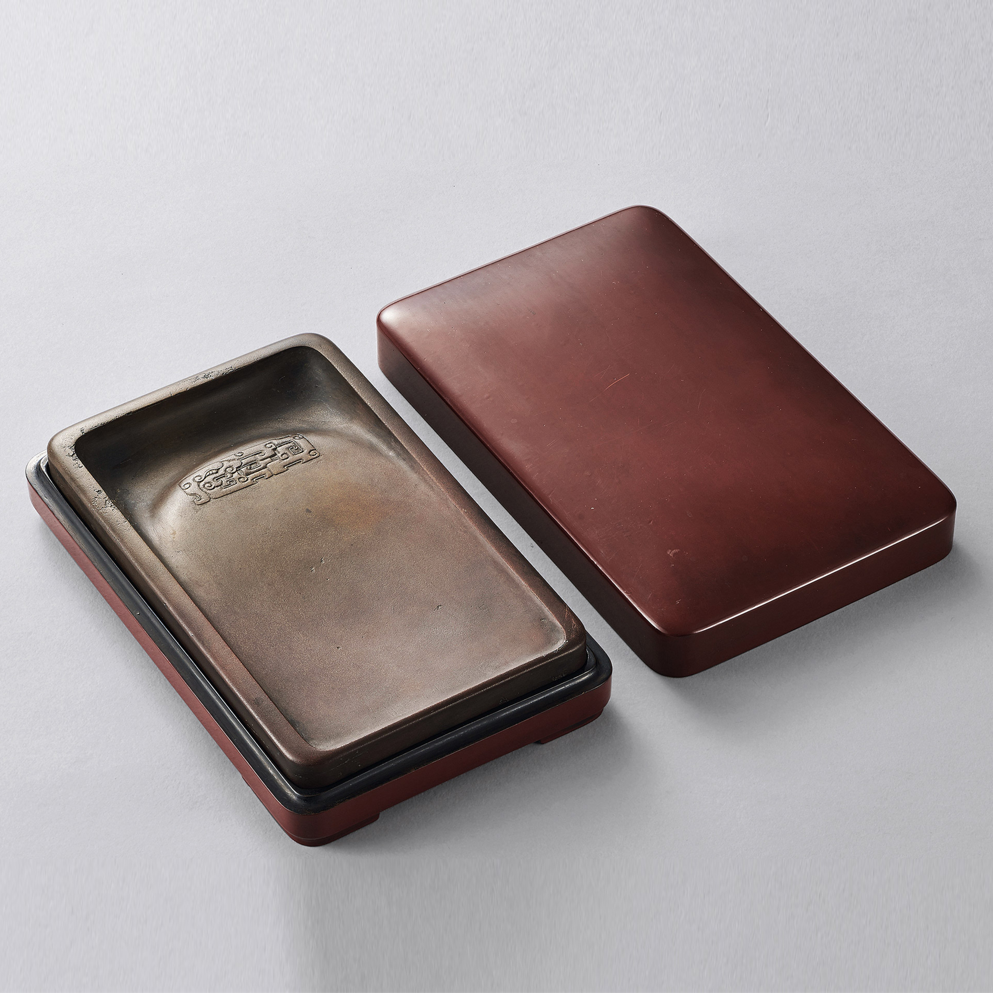 梁義款蝦頭紅澄泥硯