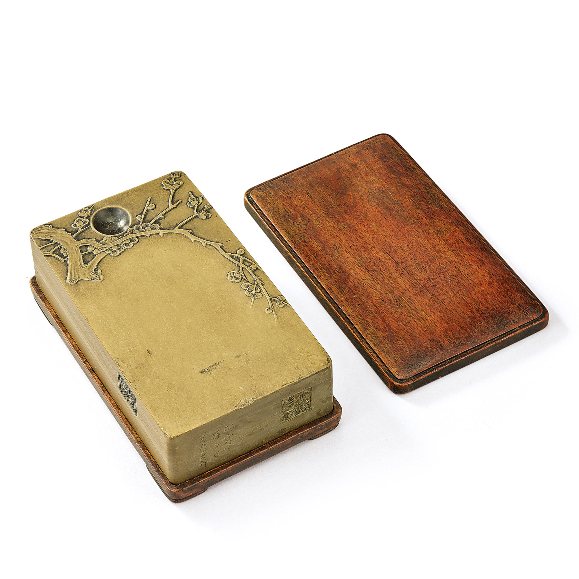 王乃光款鱔魚黄腊梅圓月澄泥硯