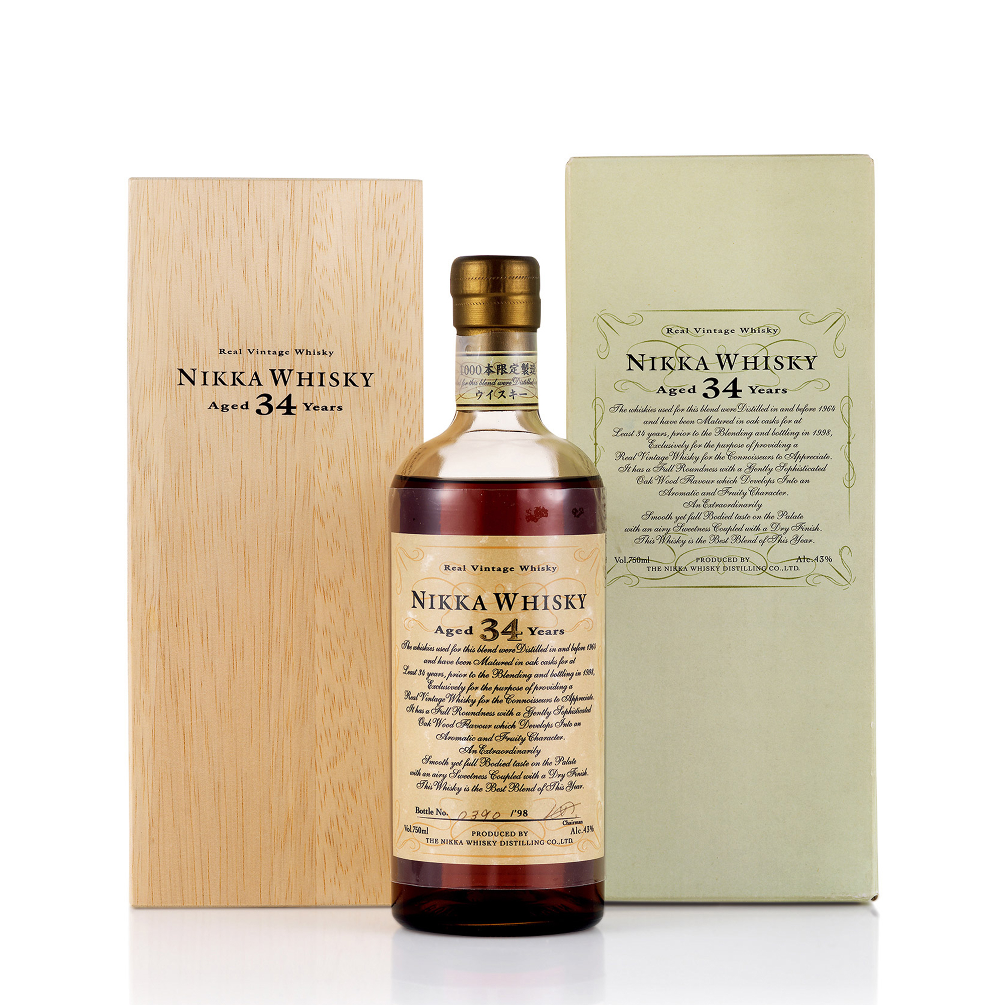 日果原廠蒸餾裝瓶,限量1000支,此瓶為第390瓶,于1998年裝瓶,原裝盒