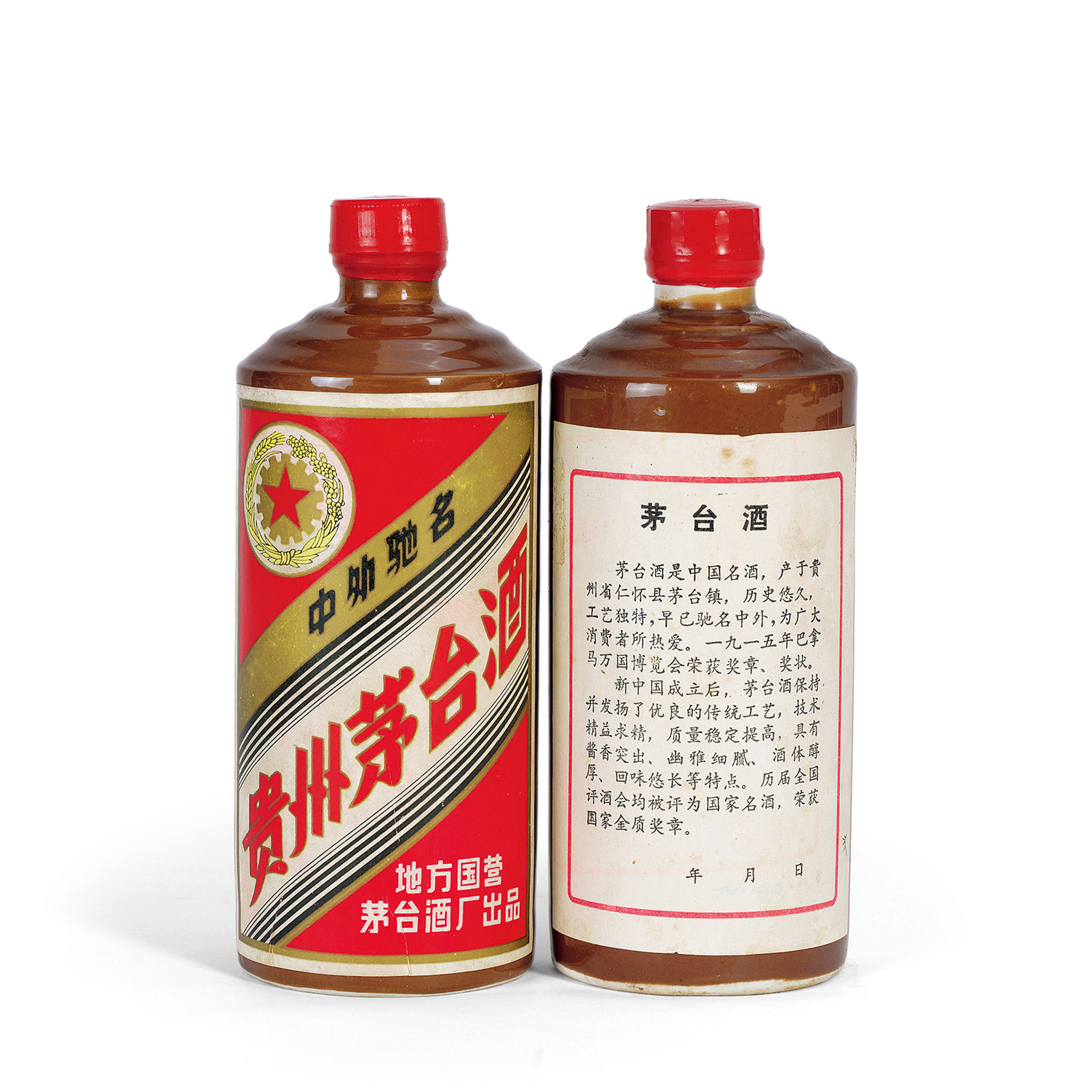 五星牌醬釉瓶茅台酒為1983年之後人民大會堂和釣魚台國賓館的特供酒,屬於高級別的非賣品,存世較少。