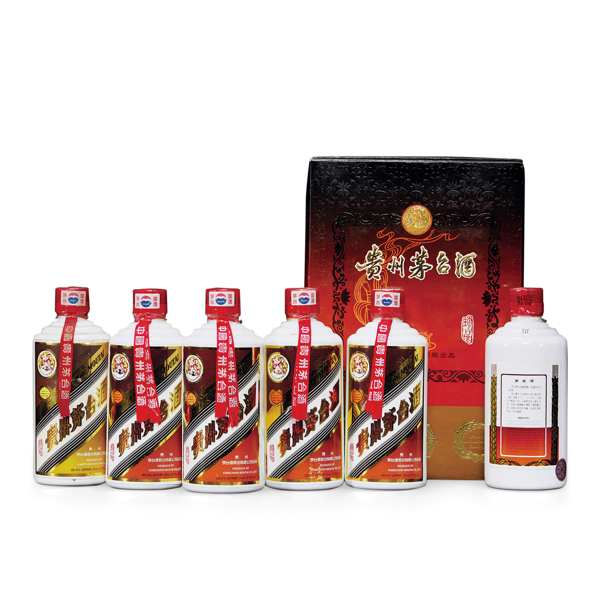 “飛天牌”豪華包裝“珍品”系列茅台酒是從1986年開始生產的高檔茅台酒,有紙質和木製兩種外包裝盒。此種珍品禮盒裝的茅台酒,是貴州茅台酒廠在推出年份酒之前的特殊優質酒。均是用窖存多年陳年老酒,精心勾兌而成、酒體醇厚豐滿、優雅細膩。本標的共6瓶,均為375ml.量裝飛天牌珍品茅台酒。