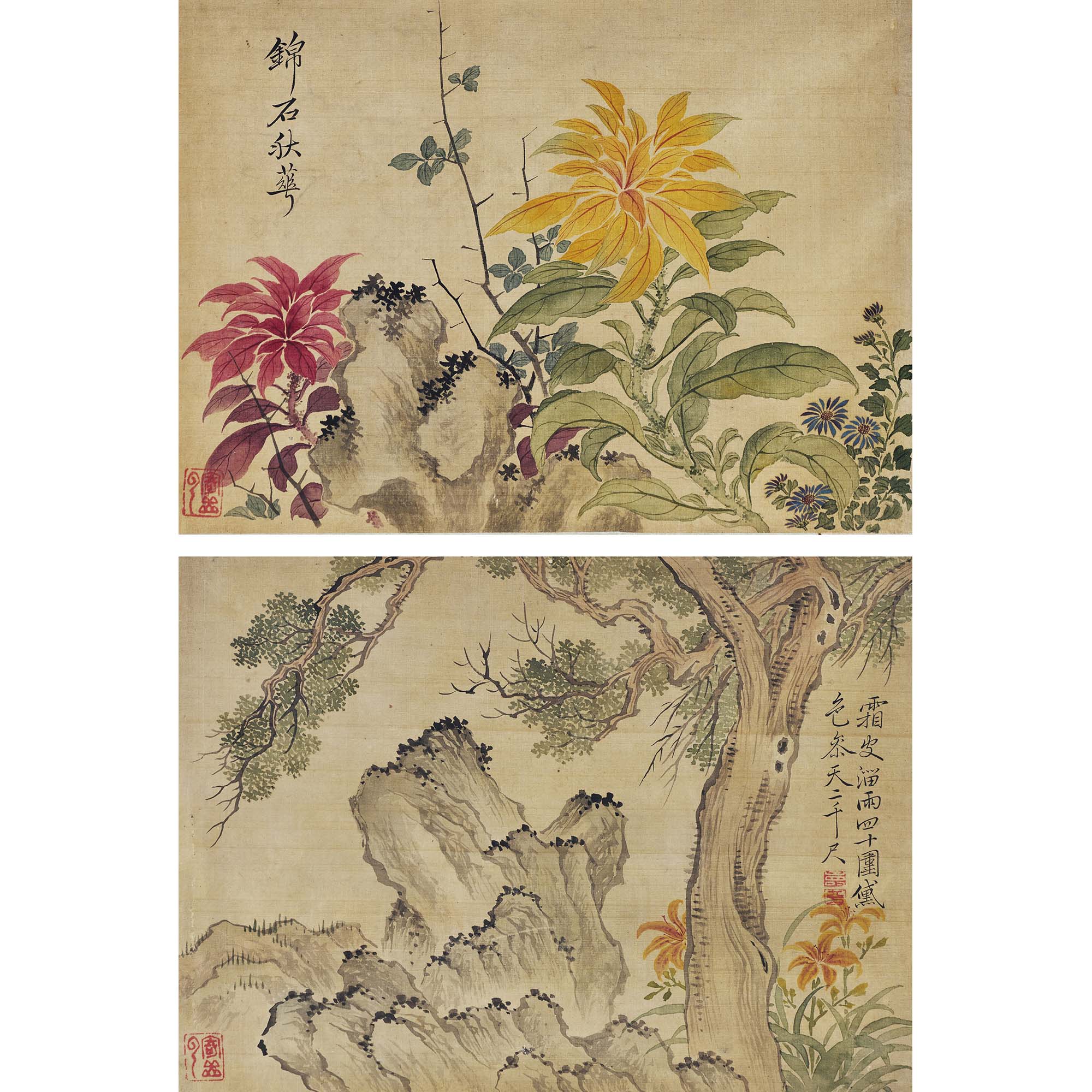 惲壽平(1633-1690) 樹石圖、錦石秋萼