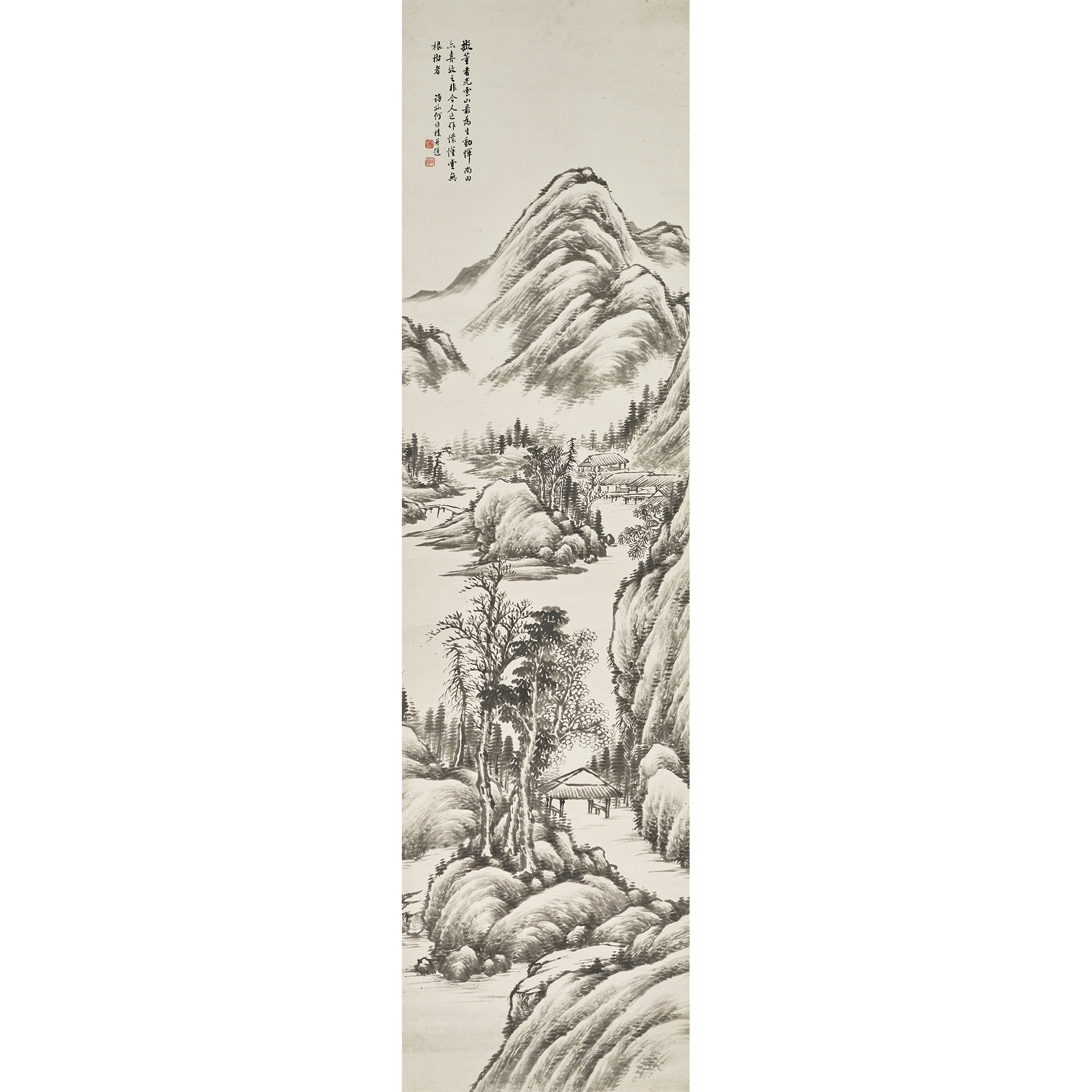 題簽:何詩孫墨筆山水立軸。鈐印:鑑□(朱)