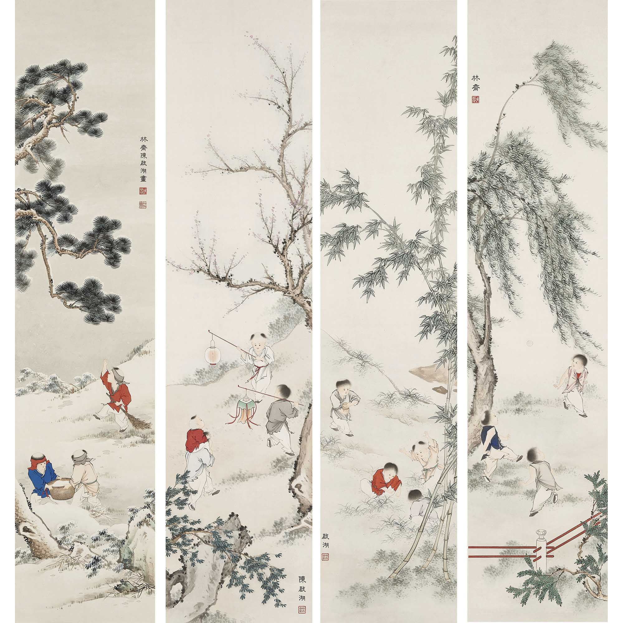 陳啓湖(1912-1999) 嬰戲圖四條屏