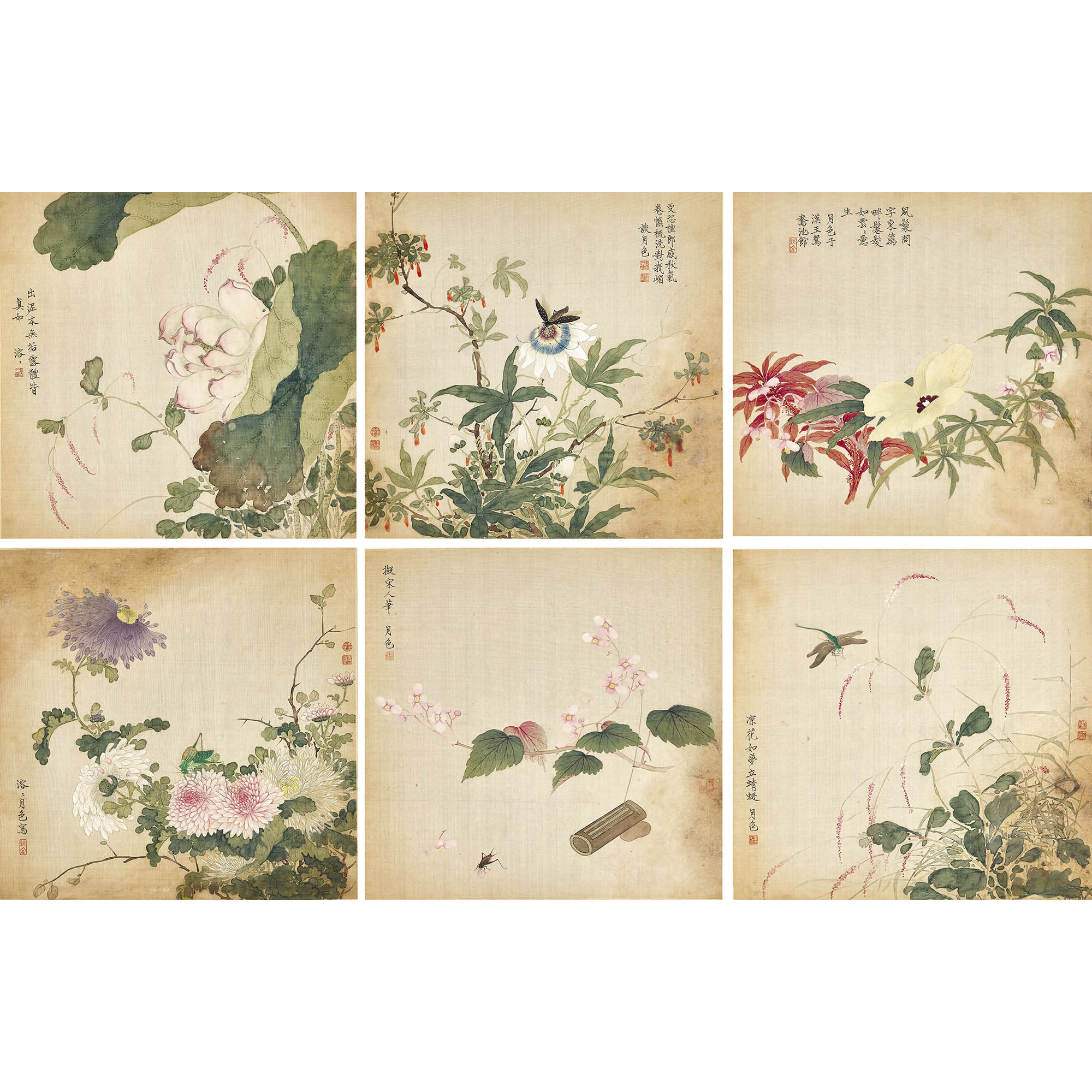談月色(1891-1976) 擬宋人花卉六開