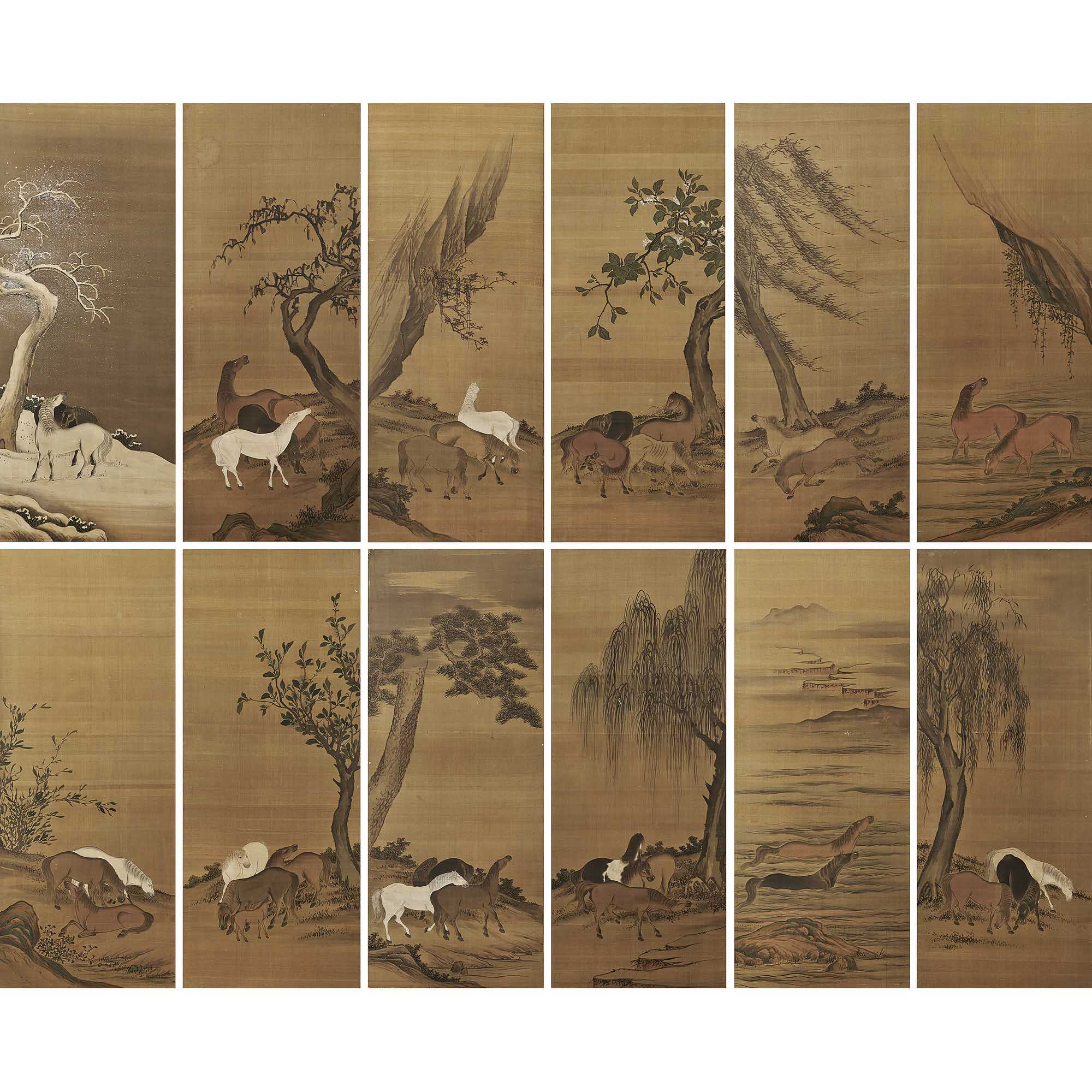趙孟頫(款) 群馬六曲二雙屏風