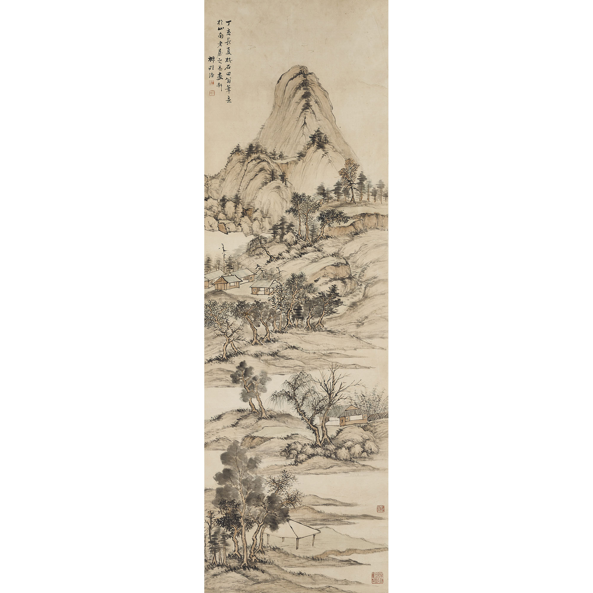 款識:丁亥長夏,撫石田翁筆意於山南老屋之易畫軒,椒畦浩。