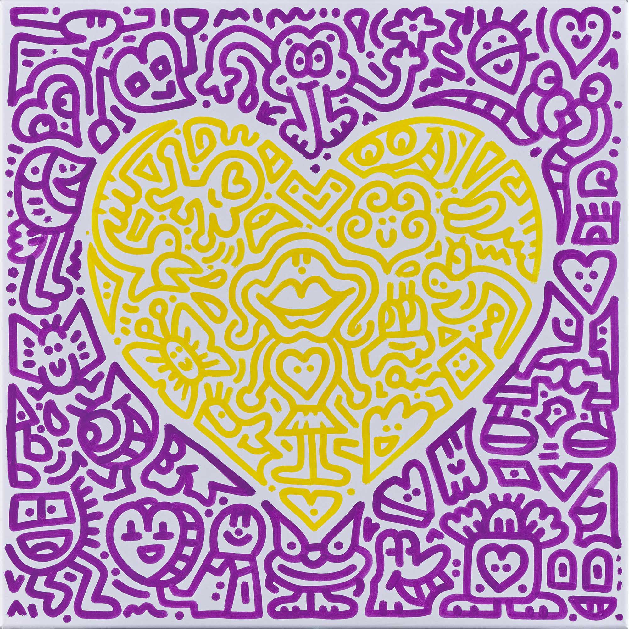塗鴉先生(B.1994)愛心系列(紫色與黄色) #1 2019年作