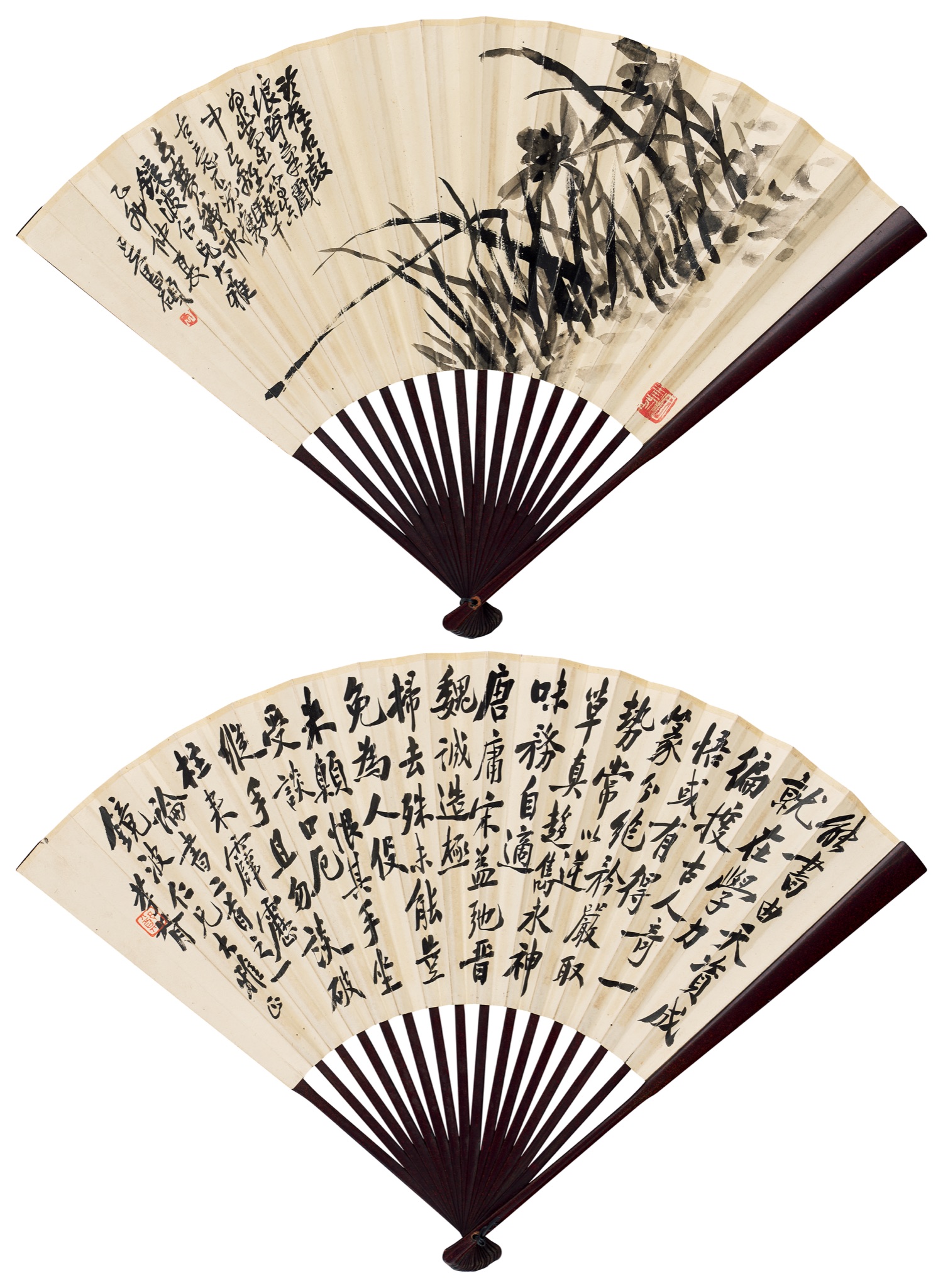 吳昌碩、鄭孝胥、「墨蘭行書」扇子