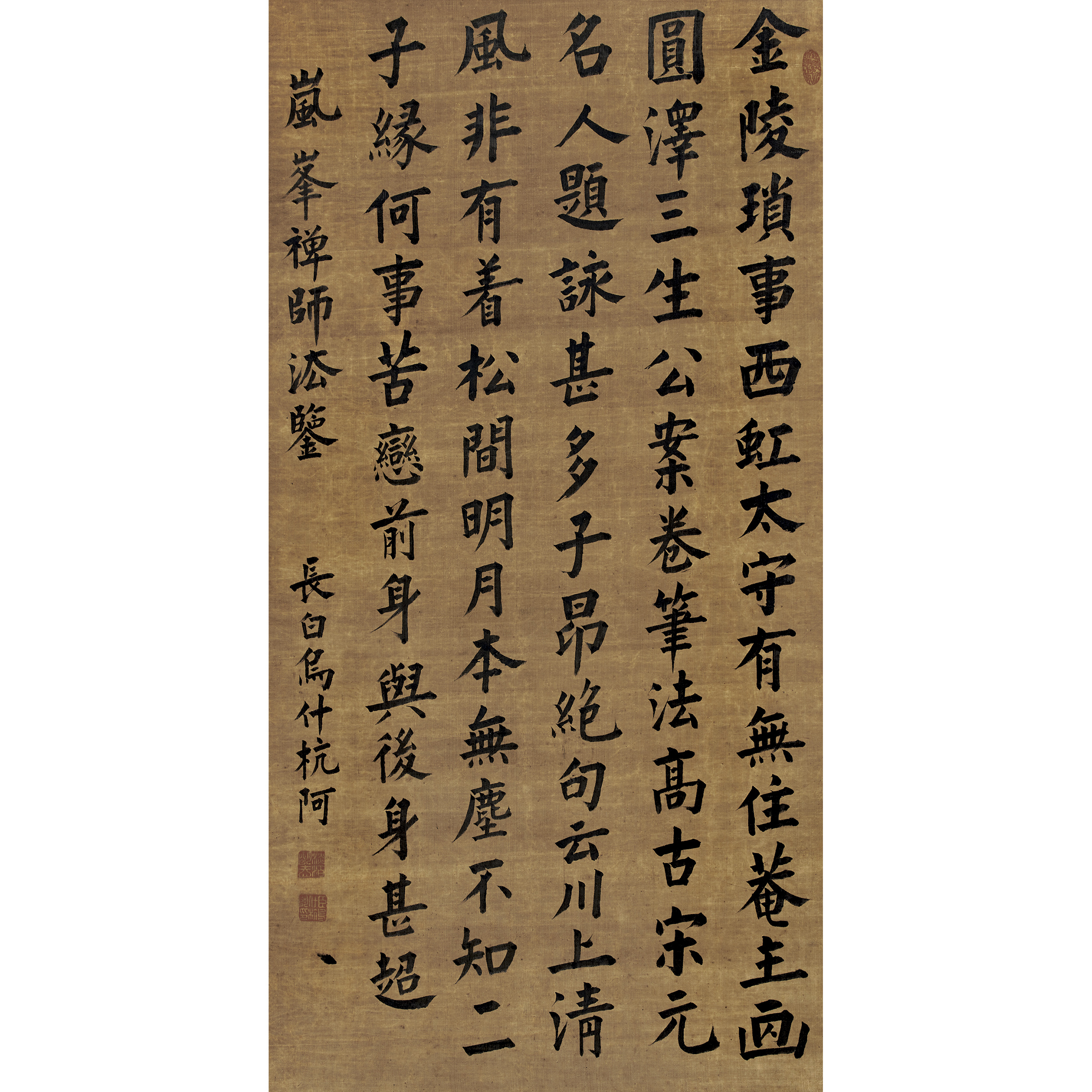 款識:嵐峯禪師法鑒。長白烏什杭阿。