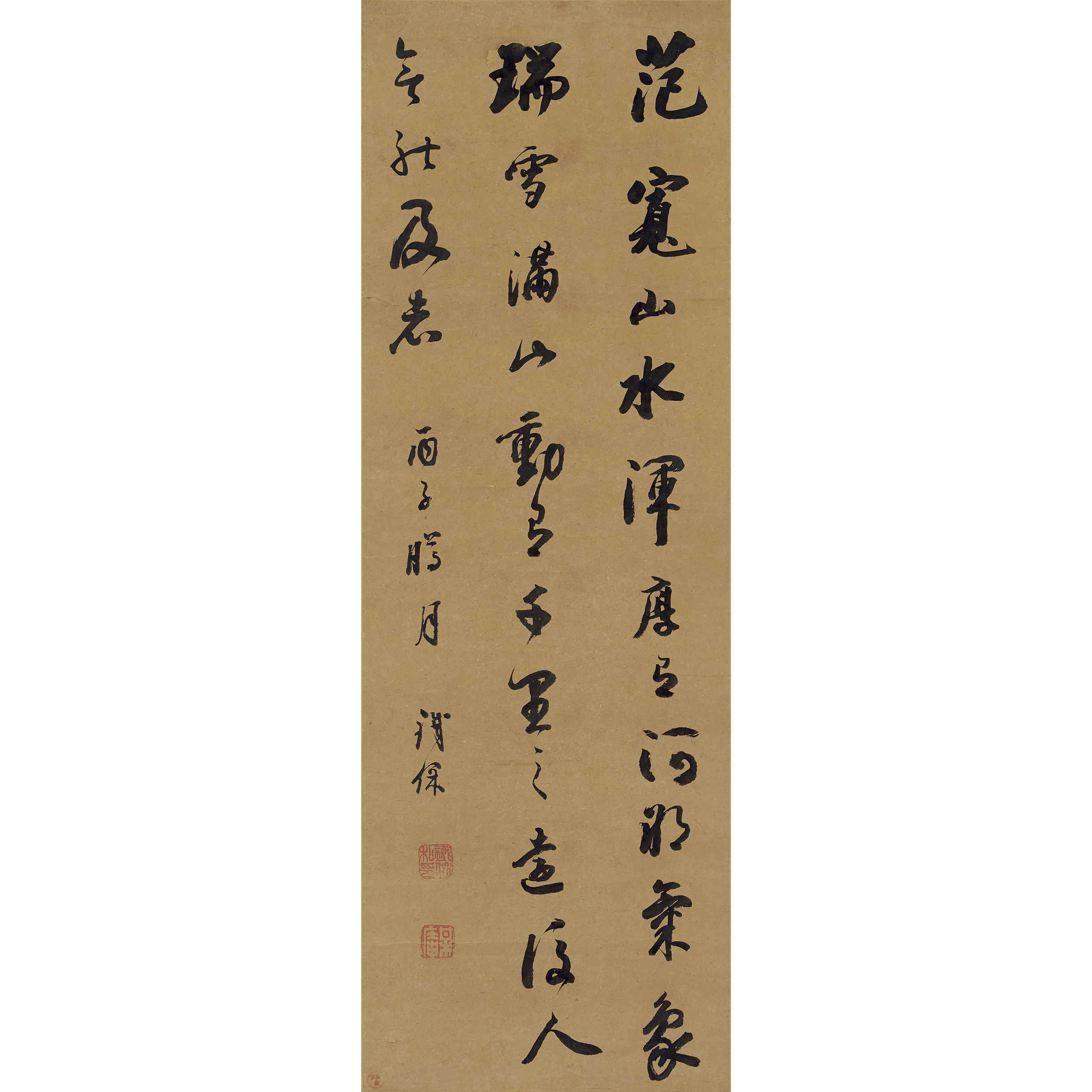 釋文:范寬山水渾厚,有河朔氣象,瑞雪滿山,動有千里之遠。後人無然及志