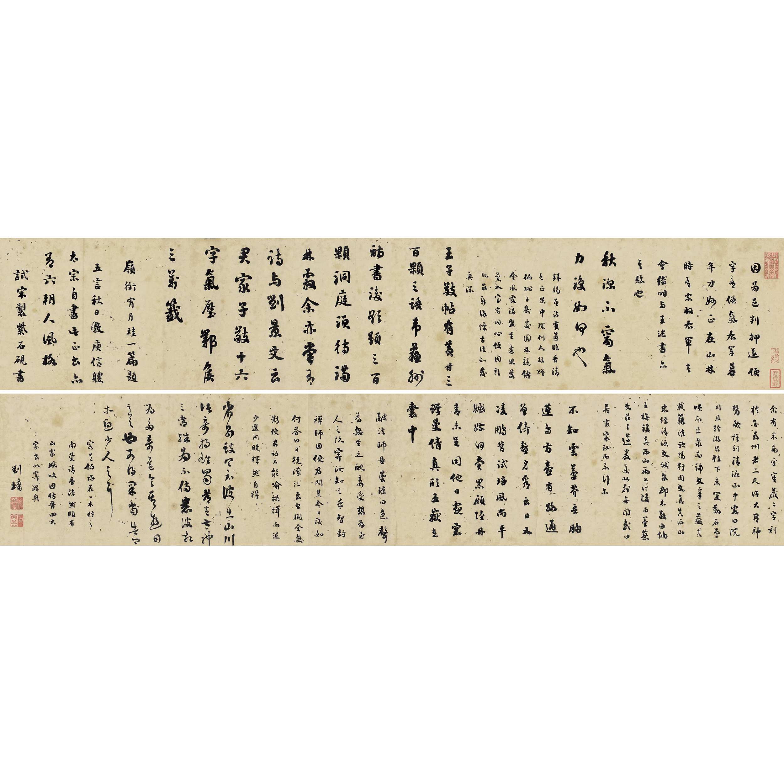 鈐印:劉墉印信(朱)、石庵(白)、御賜清愛堂(朱白)