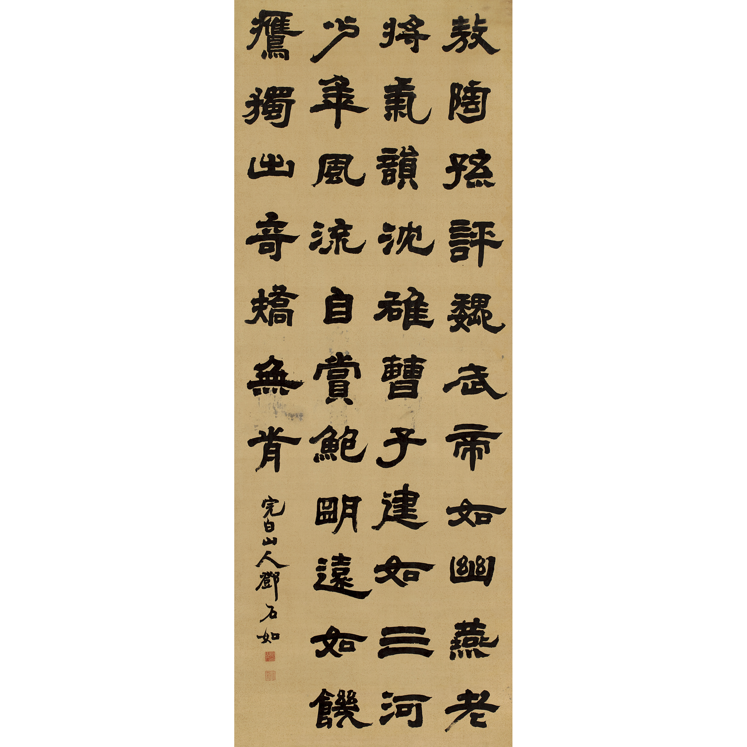 鄧石如 清代篆刻家、書法家,鄧派創始人。初名琰,字石如,避嘉慶帝諱,遂以字行,後更字頑伯,因居皖公山下,又號完白山人、笈游道人、龍山樵長等。著有《完白山人篆刻偶存》。