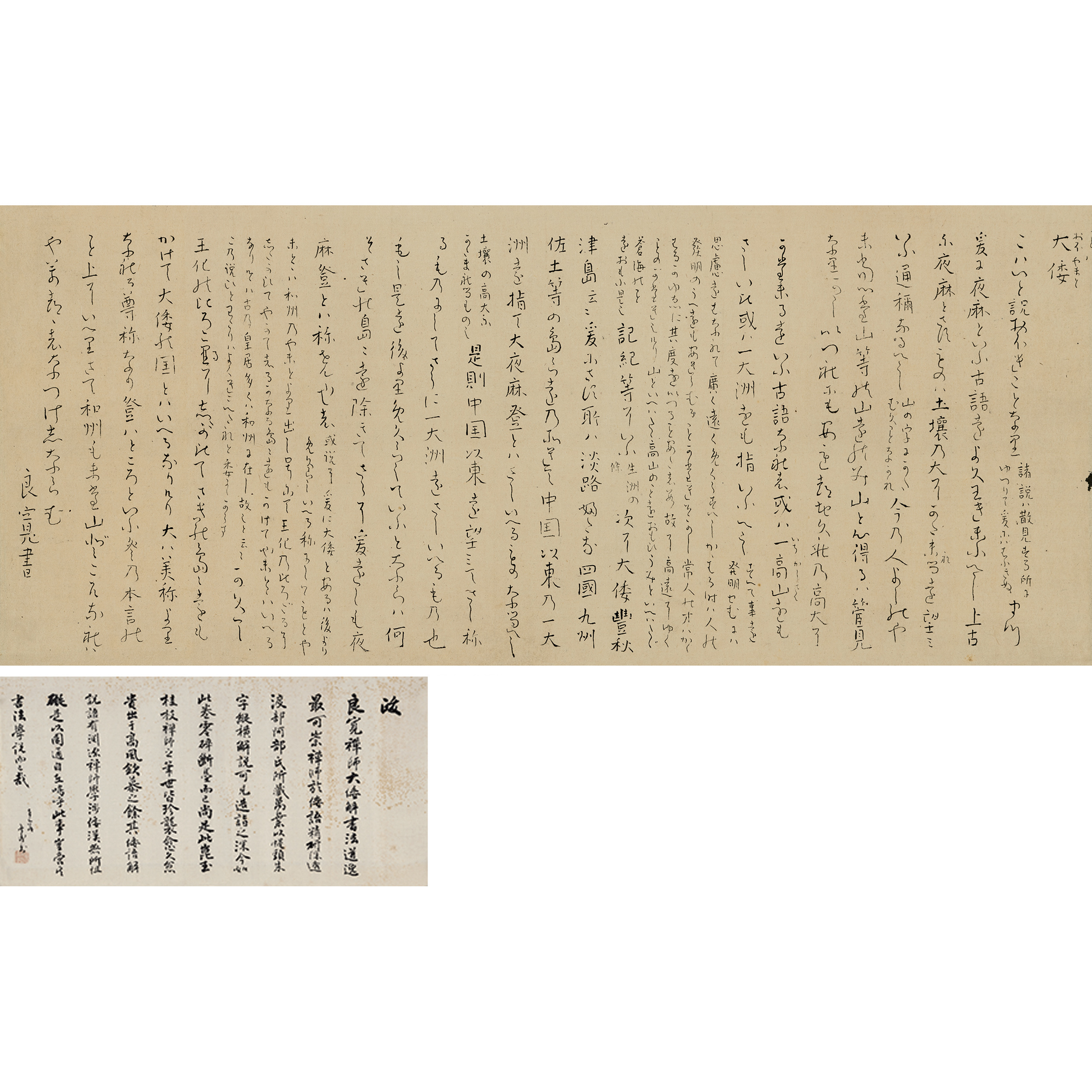 題跋:跋,良寬禪師大倭解書法,道逸…書法學說而已哉。七十三翁,無壽書。鈐印:□經窮苦發清香(白)