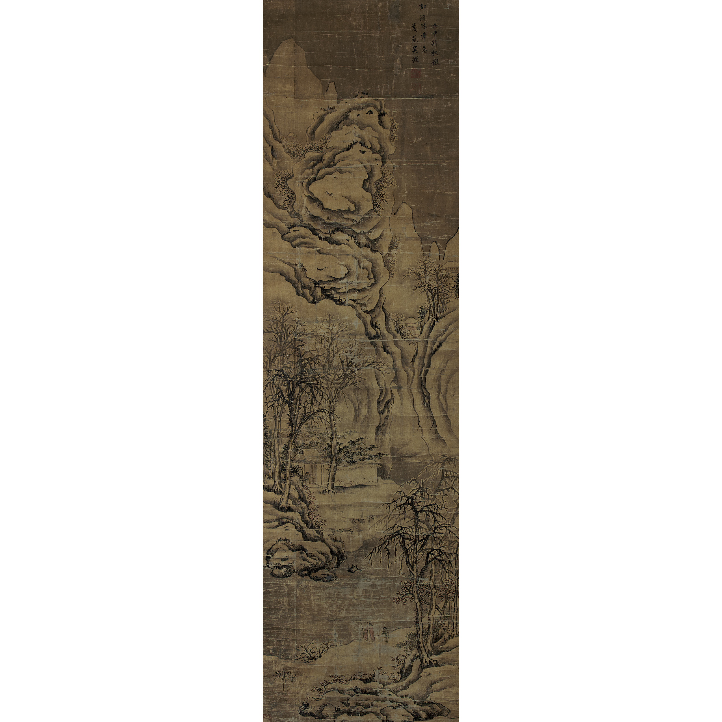 蓋上題:明人吳徵雪景山水。鈐印:躬耕草廬(朱)