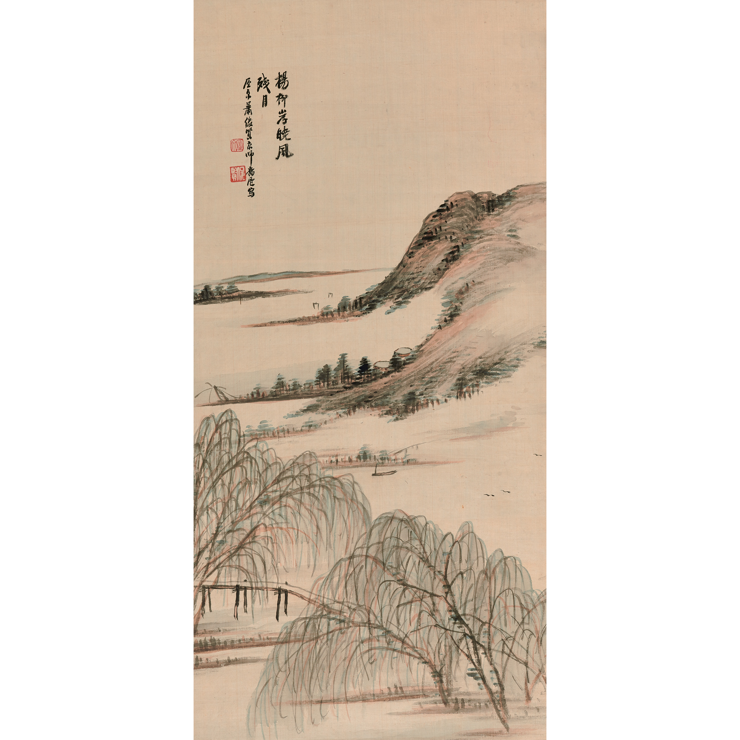 款識:楊柳岸曉風殘月,屋泉蕭俊賢京師寓廬寫。