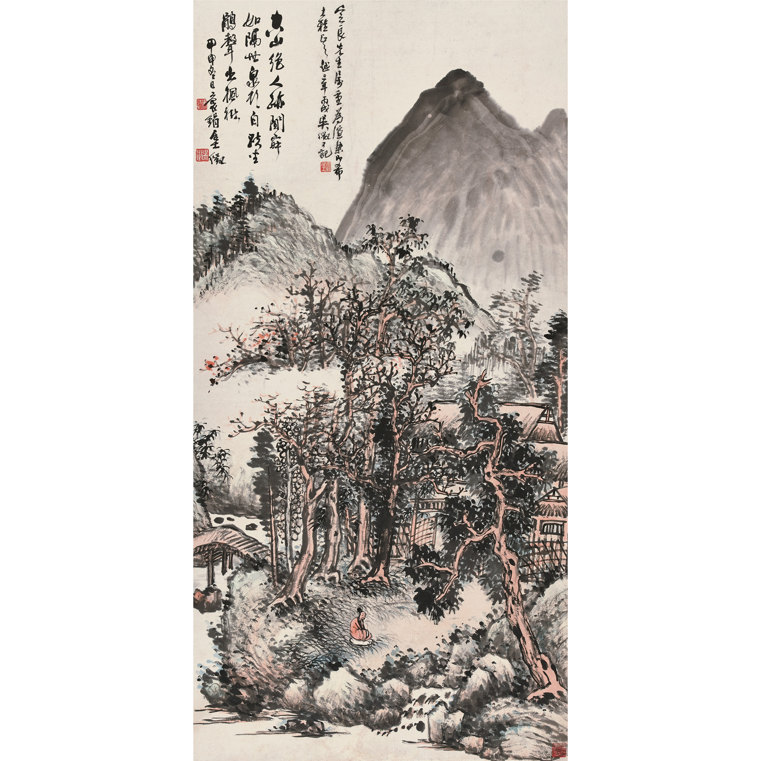 ①空山絕人跡,閑寂如隔世,泉頭自跌坐,鵑聲出楓林。甲申冬日袍鋗居士徵。鈐印:吳待秋(白)、吳徵(白)