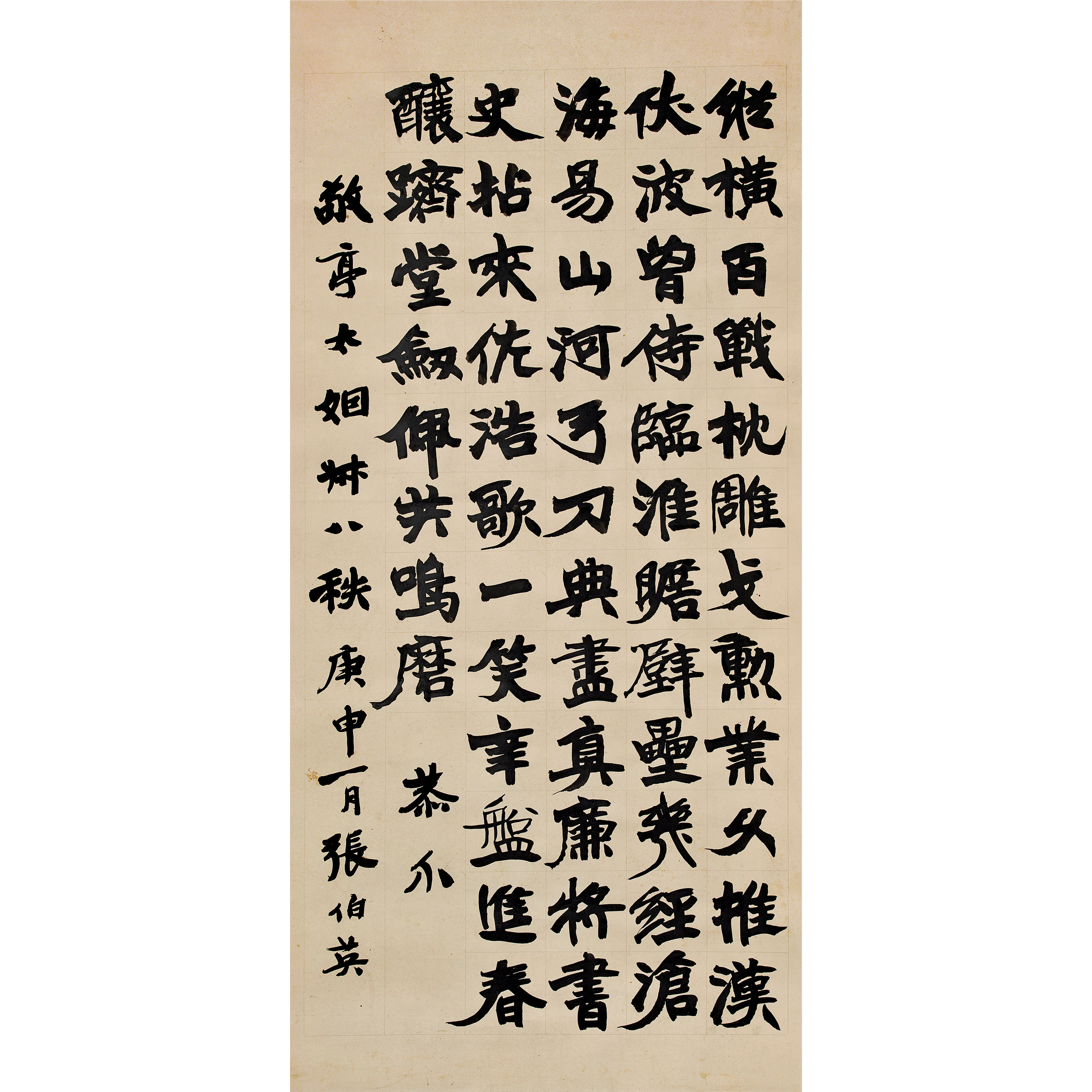 款識:恭介敬亭太姻叔八秩,庚申一月,張伯英。