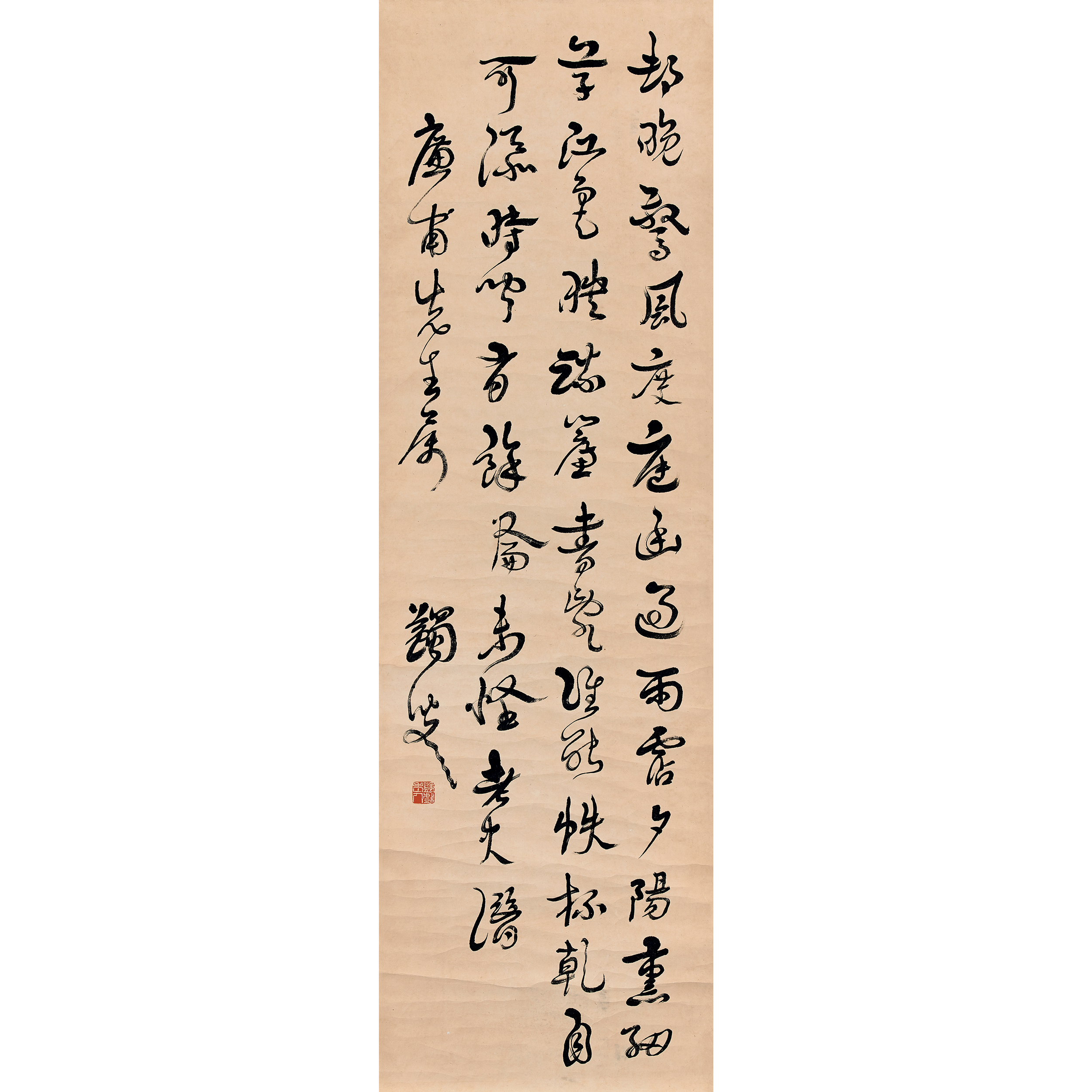 釋文:邨晚驚風度,庭幽過雨霑,夕陽熏細草,江色映疏簾,書亂誰能帙,杯幹自可添,時聞有餘論,未怪老夫潛。