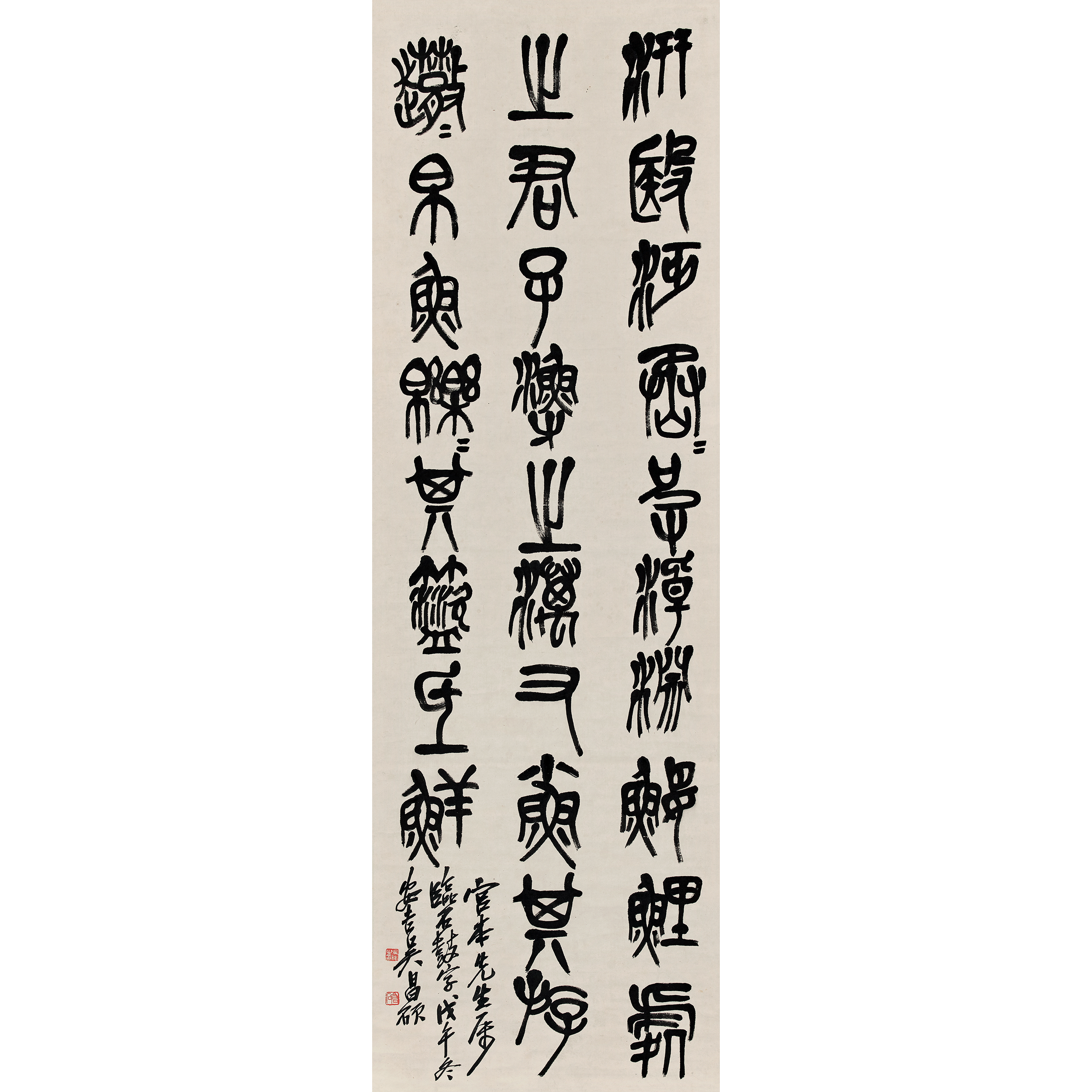 款識:宮本先生屬臨石鼓字,戊午冬,安吉吳昌碩。