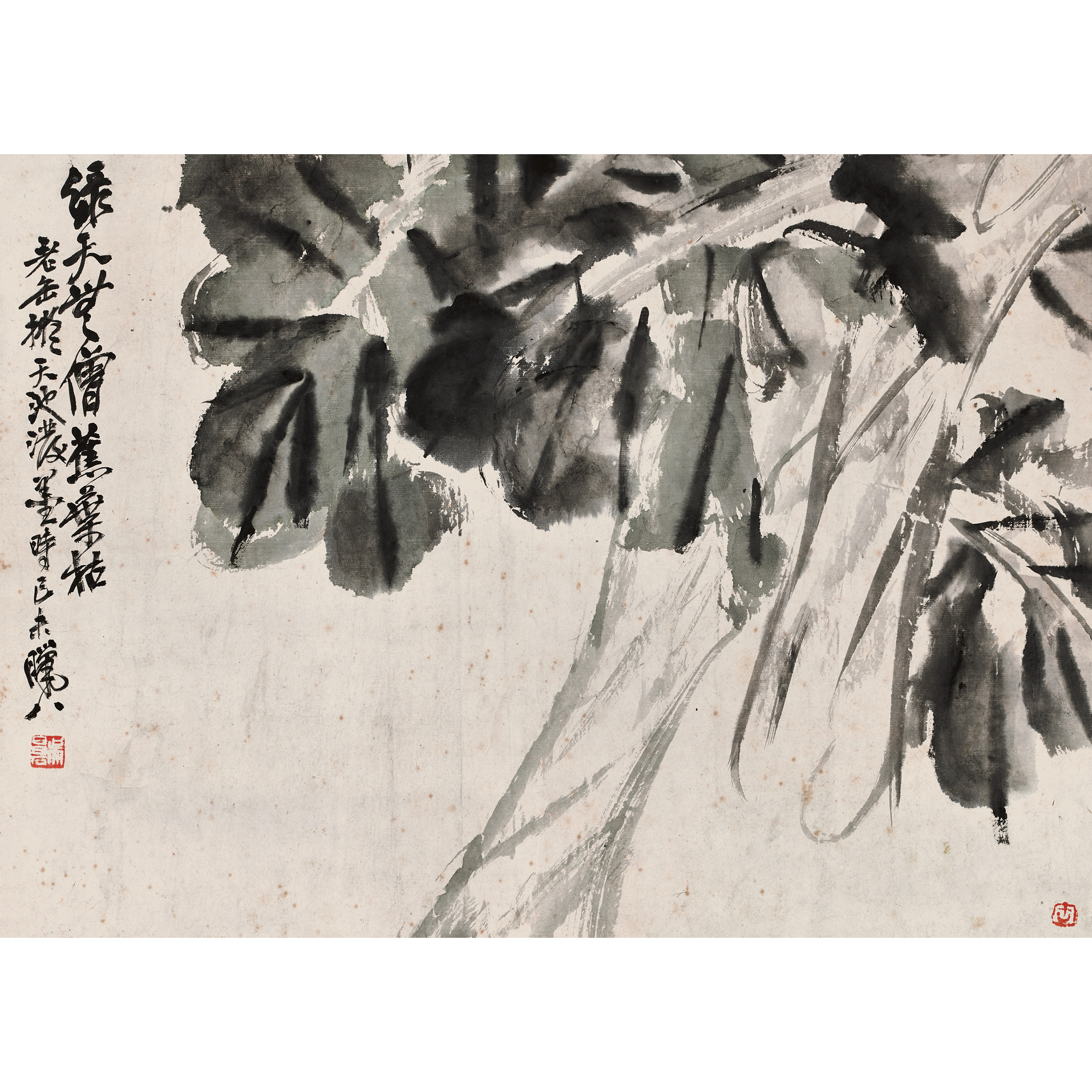 款識:綠天無僧蕉葉枯。老缶擬天池潑墨,時己未臘八。