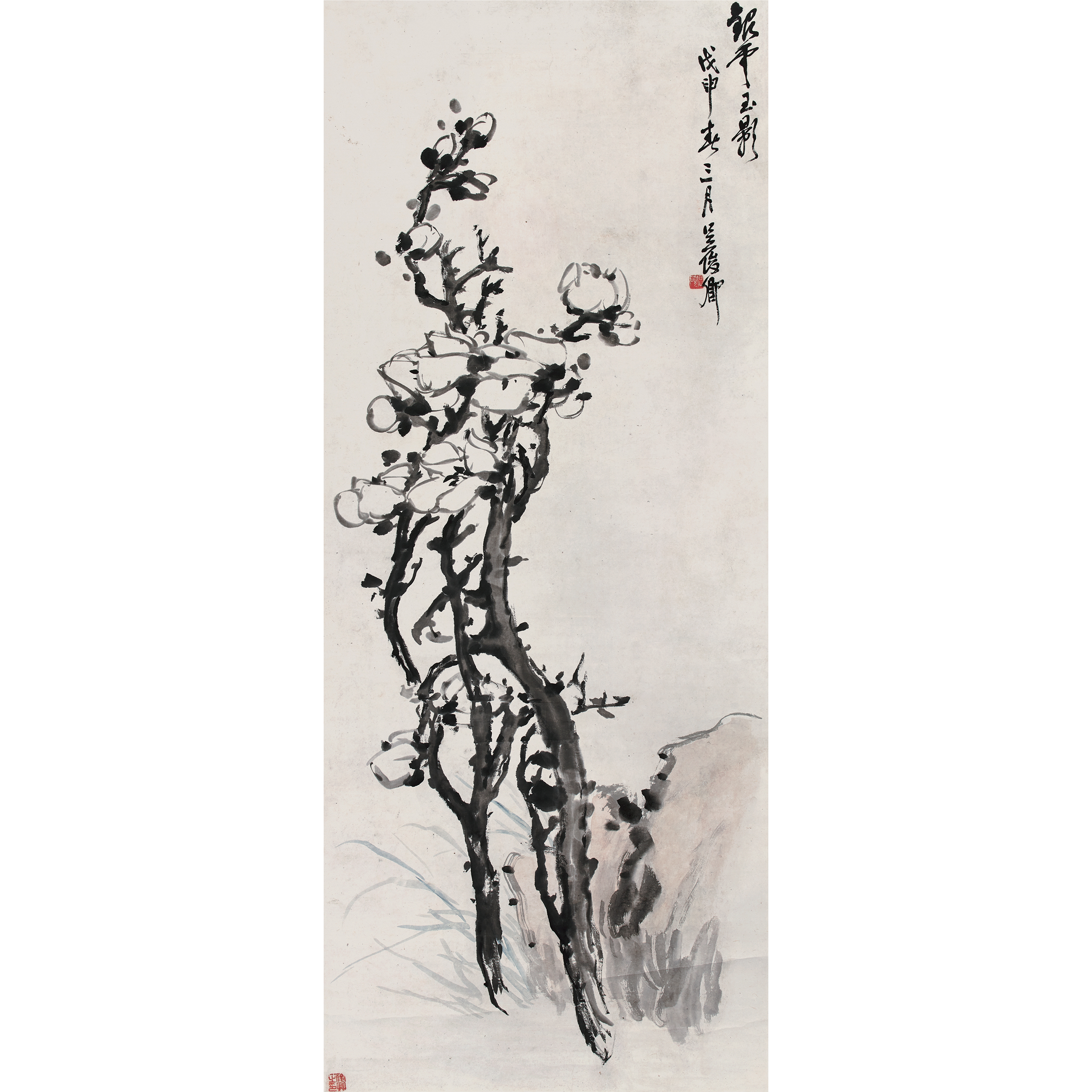 款識:銀雲玉影。戊申春三月,吳俊卿。