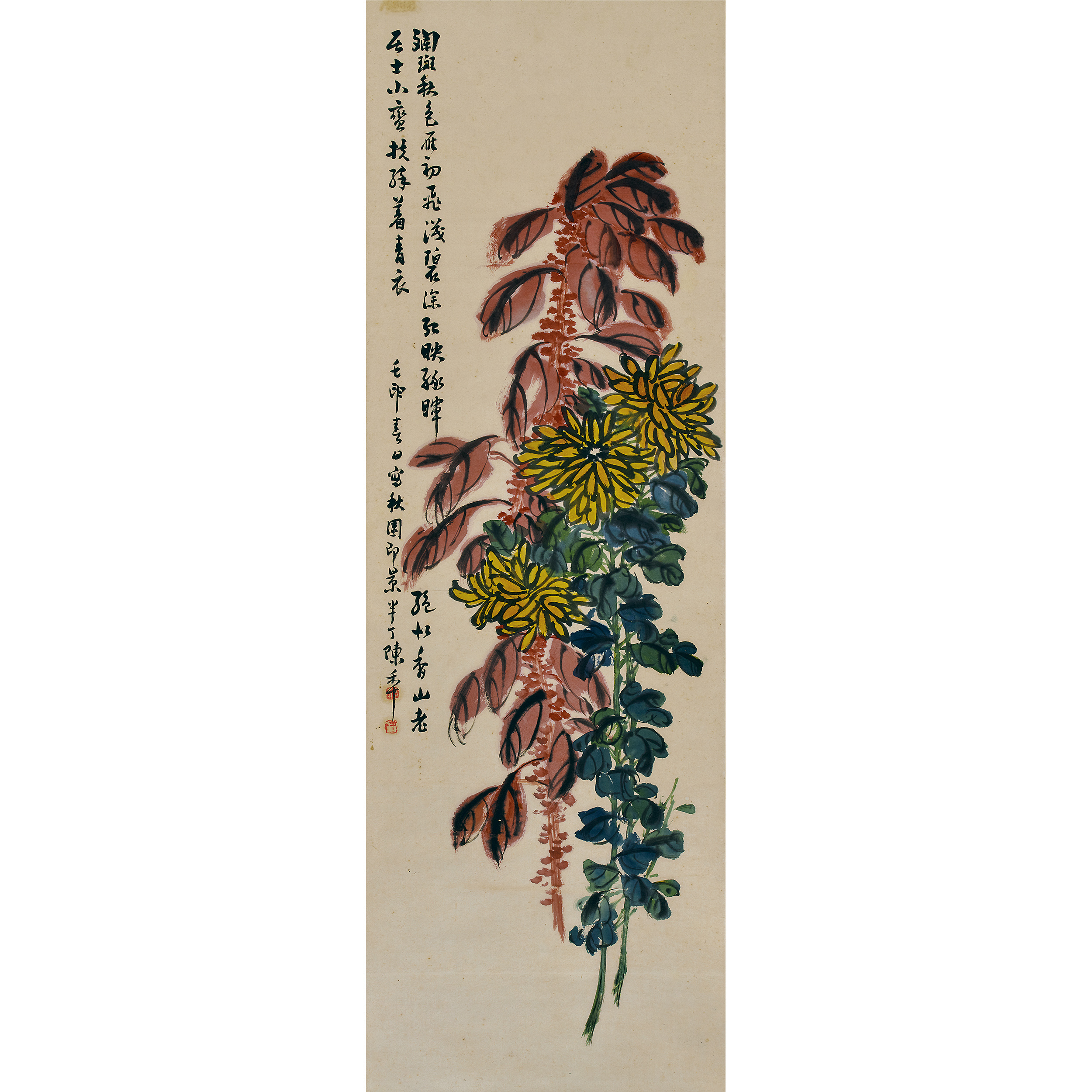 作者簡介:陳半丁 即陳年,字半丁,別署辟癡,又字靜山。以字半丁行世,號半丁老人、半叟、山陰半叟、稽山半老、山陰道上人、不須翁等。陳半丁擅長花卉、山水,兼及書法、篆刻。寫意花卉師承任伯年、吳昌碩,又師法陳淳、徐渭、石濤、李複堂、趙之謙諸家。書法以行草見長。