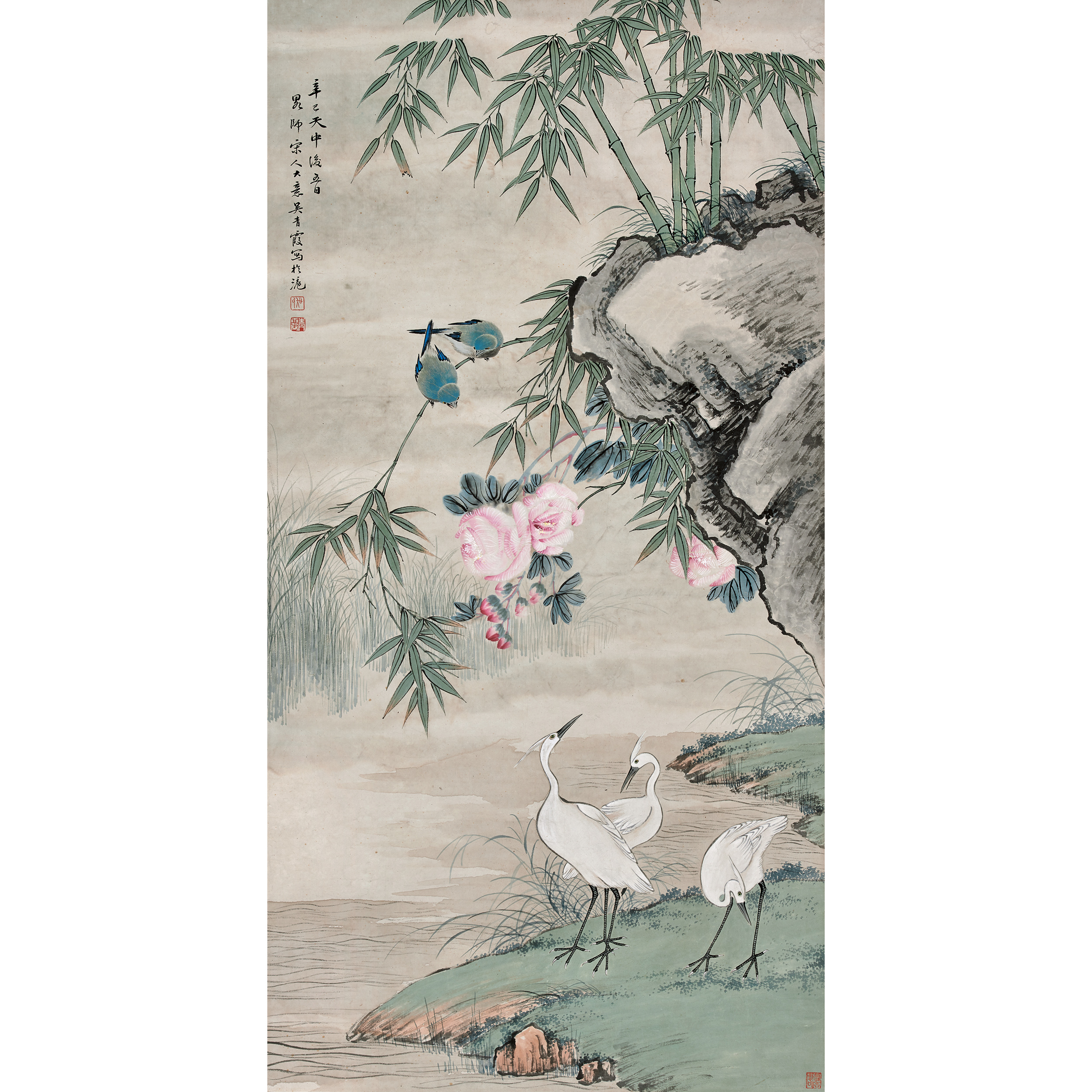 款識:辛巳天中後五日,略師宋人大意,吳青霞寫於滬。