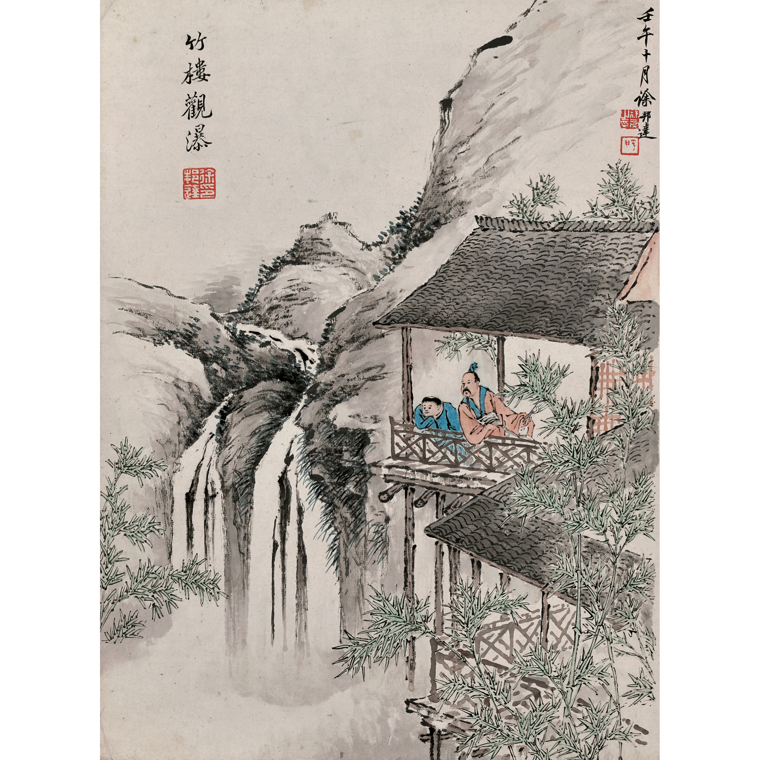 款識:竹樓觀瀑。壬午十月,徐邦達。