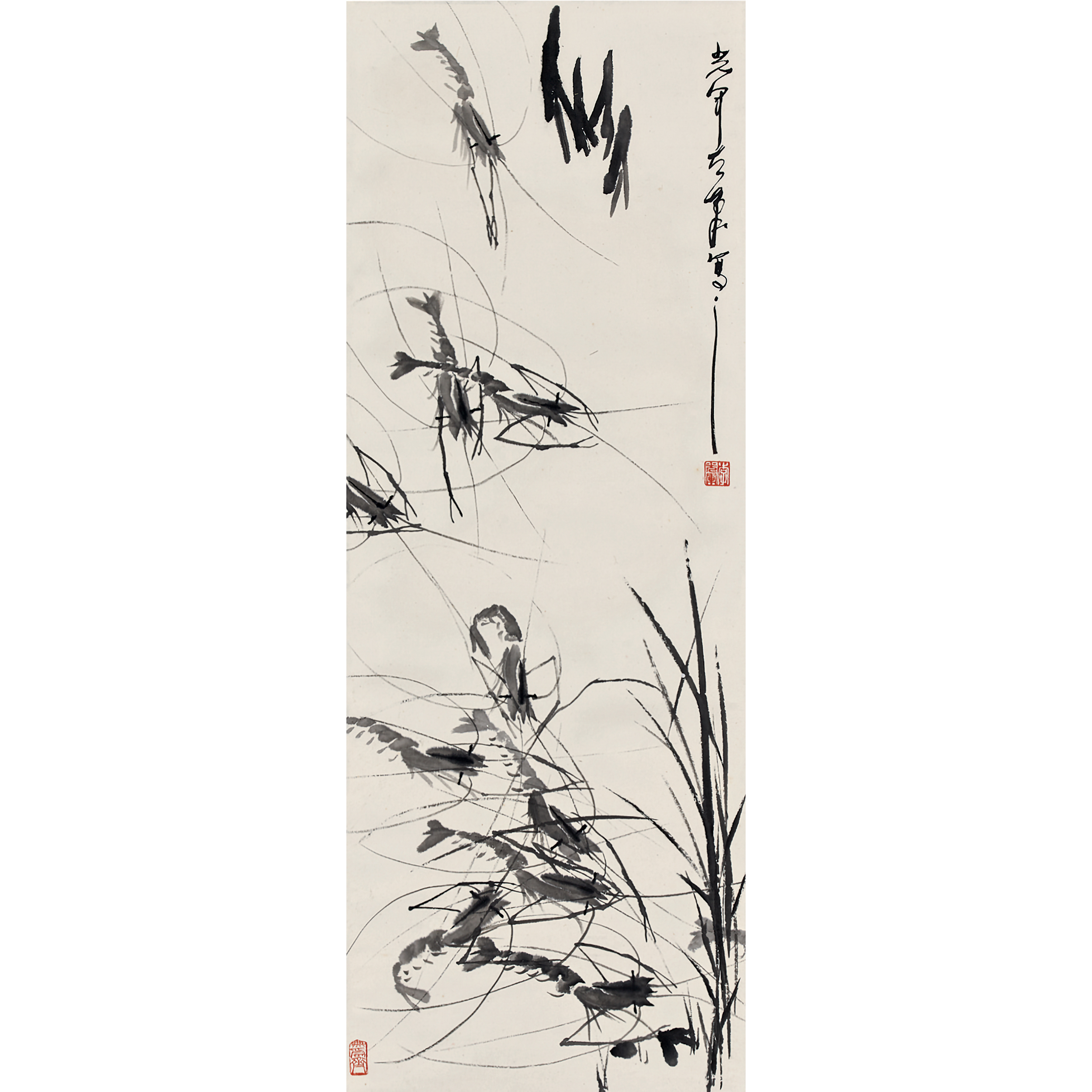 墨筆群蝦