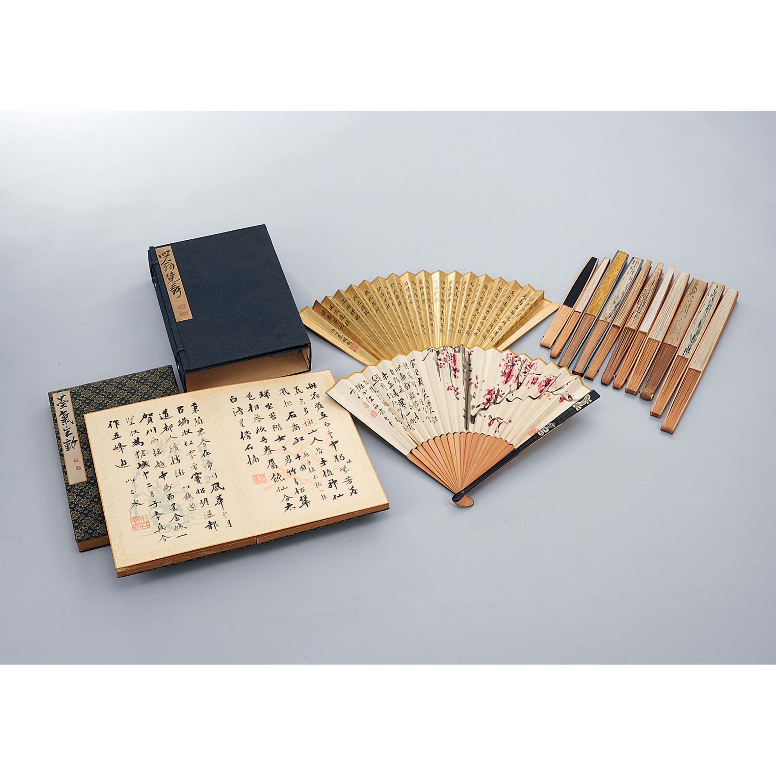 成扇一組、畫冊兩冊