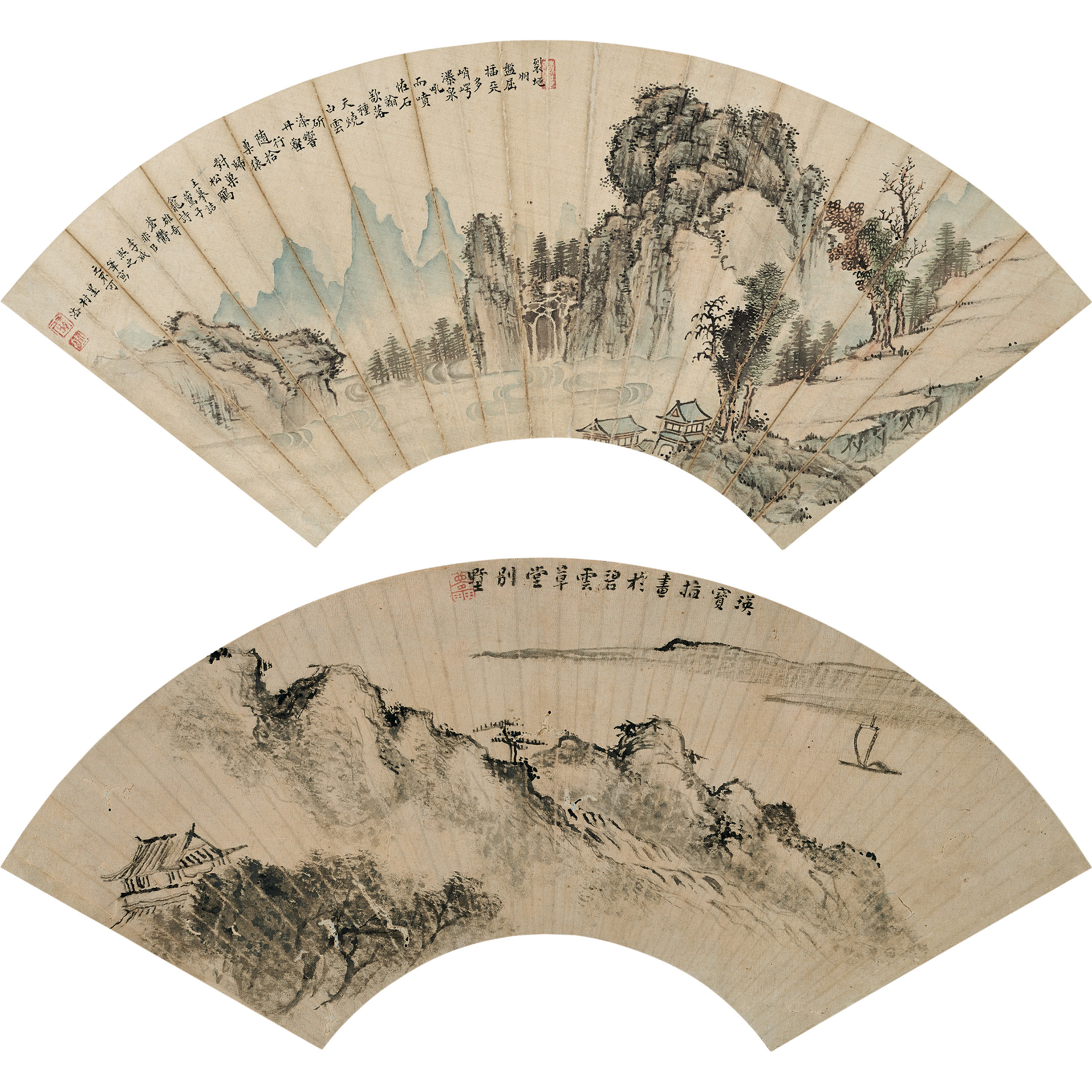 設色絹本 水墨絹本