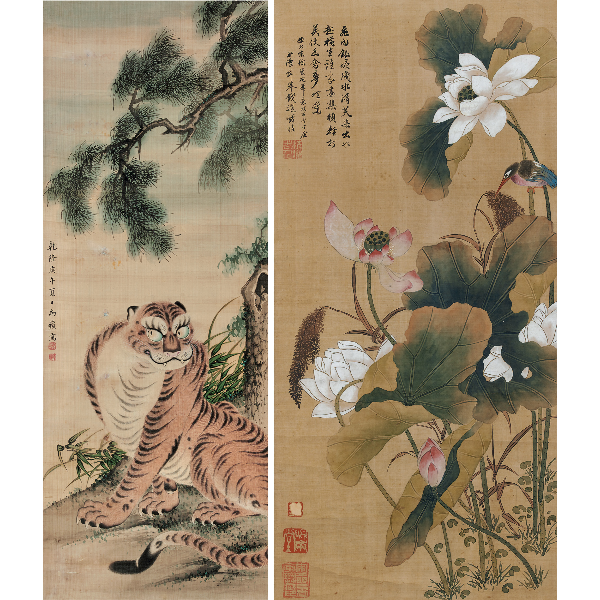 來源:日本關東實業家同一收藏。作者簡介:沈銓 字衡之,號南蘋,又號衡齋,浙江吳興(今湖州)人。工寫花卉翎毛、走獸,以精密妍麗見長,也擅長畫仕女。創“南蘋派”寫生畫,深受日人推崇,被稱為“舶來畫家第一”。錢選 字舜舉,浙江吳興人。畫法師法趙昌,元朝初年時,同時跟趙孟頫、趙雍、陳琳、劉貫道等,同樣以擅長花鳥畫出名。他提倡繪畫中的“士氣”,在畫上題寫詩文或跋語,萌芽了詩、書、畫緊密結合的文人畫的鮮明特色。